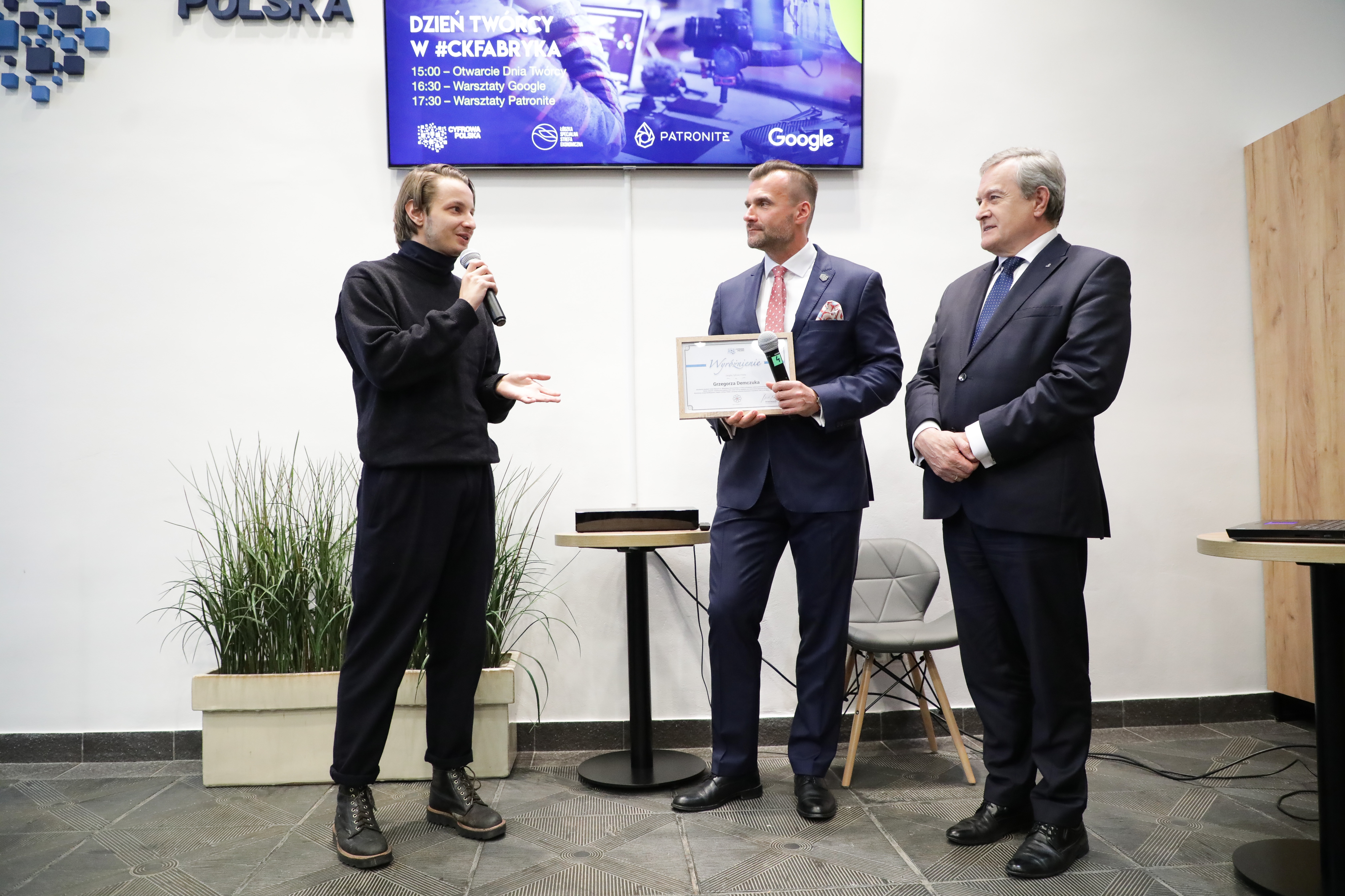 Szef resortu kultury, razem z opiekującym się CK Fabryka prezesem Związku Cyfrowa Polska Michałem Kanownikiem, wręczyli granty młodym twórcom związanym z łódzką Akademią Sztuk Pięknych. Podpisano również list intencyjny ws. porozumienia o współpracy pomiędzy Akademią Sztuk Pięknych im. Władysława Strzemińskiego w Łodzi a Związkiem Cyfrowa Polska. Jego efektem mają być wspólne projekty realizowane w CK Fabryka. Pierwszym z nich ma być konkurs dla studentów ASP na stworzenie rzeźby, która stanie na terenie ŁSSE.