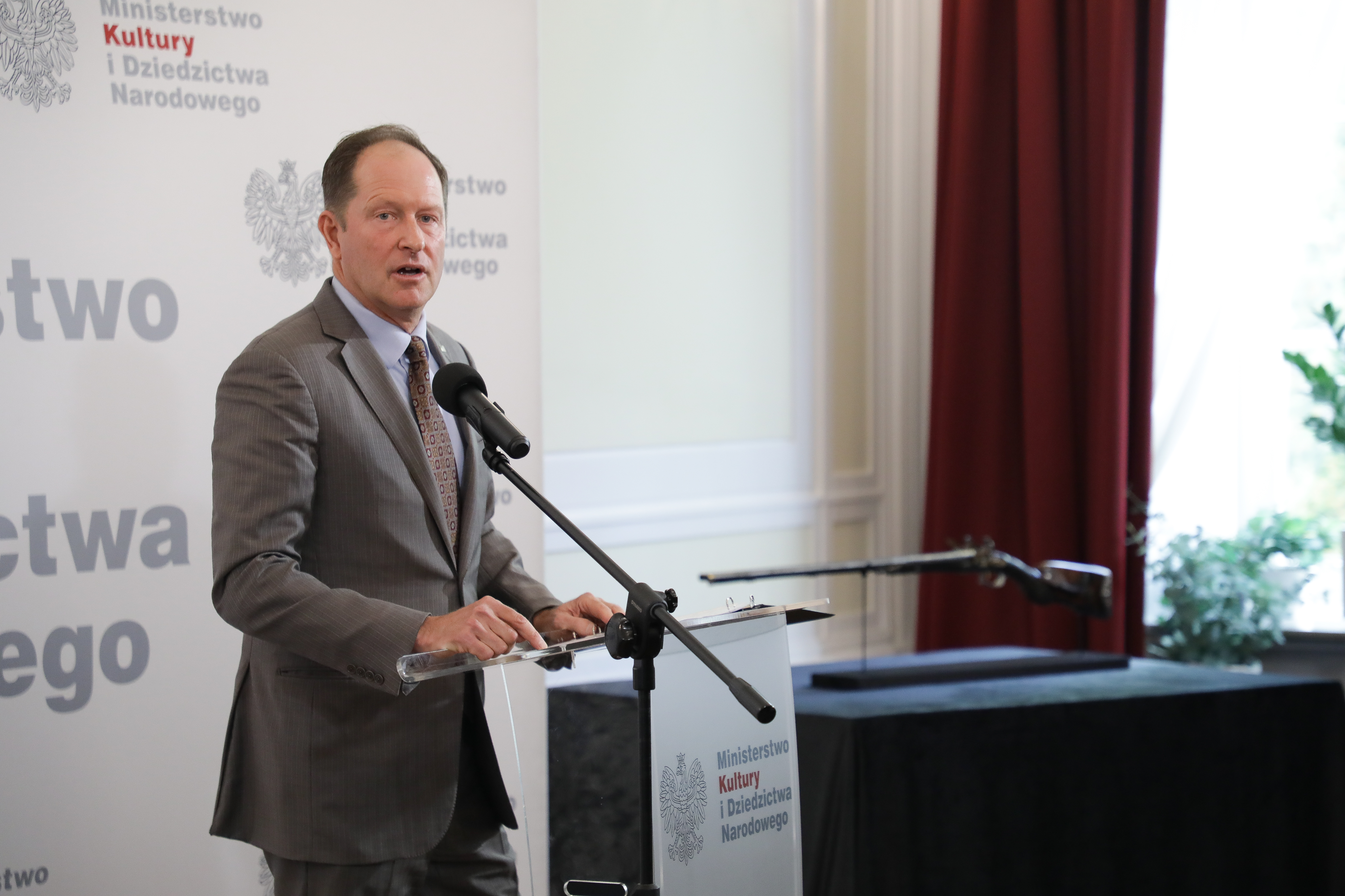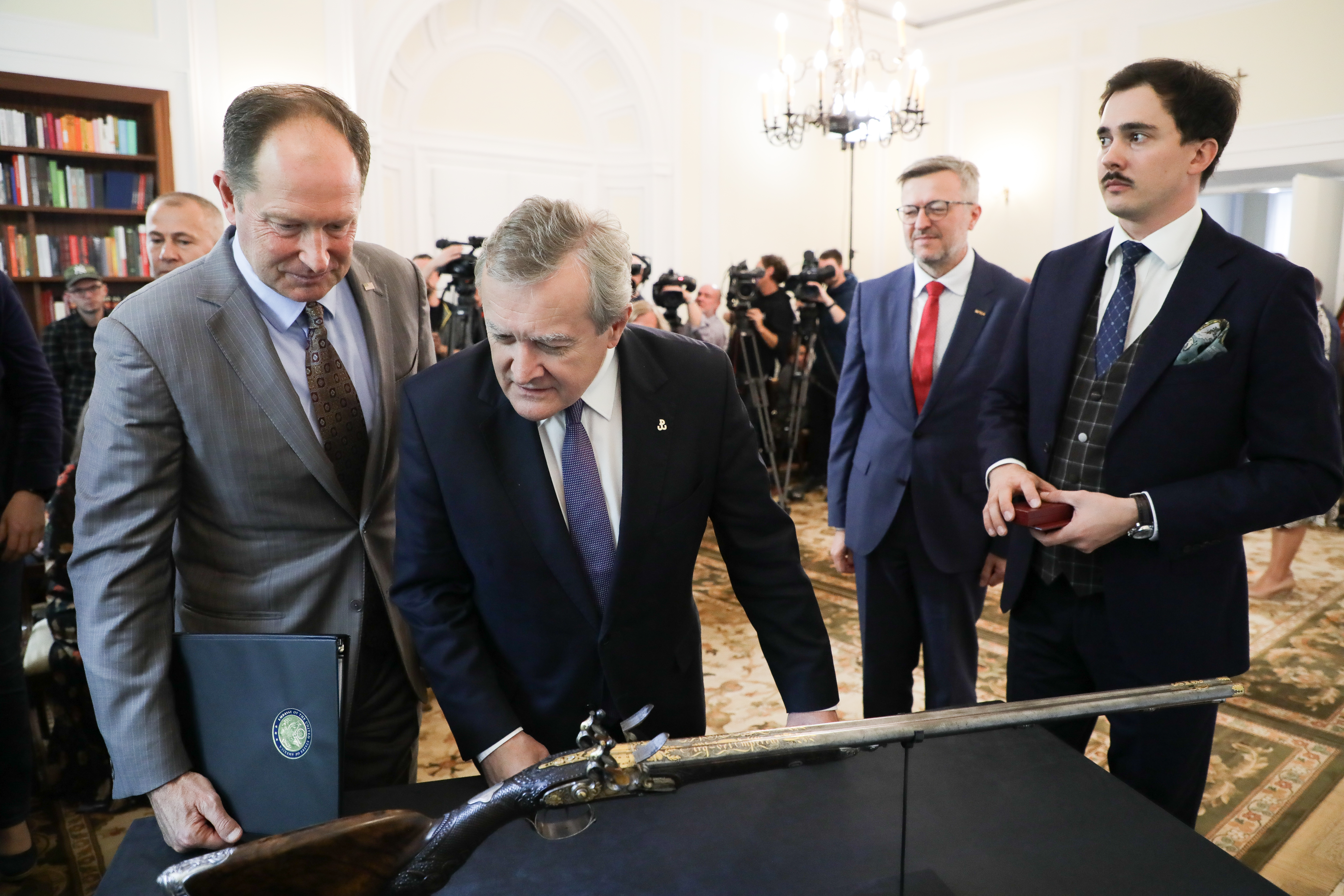 „Dzisiaj kolejna polska strata wojenna wraca do Ojczyzny! Bardzo piękna, wyjątkowa strzelba myśliwska hrabiego Wincentego Krasińskiego podarowana przez Napoleona, która została odnaleziona w Cleveland, jest ponownie w Polsce dzięki bardzo dobrej współpracy ze Stanami Zjednoczonymi” – powiedział wicepremier, minister kultury i dziedzictwa narodowego prof. Piotr Gliński podczas uroczystości prezentacji i przekazania do zbiorów Muzeum Historii Polski unikatowej strzelby myśliwskiej hrabiego Wincentego Krasińskiego, utraconej w czasie II wojny światowej i odzyskanej w maju br. dzięki działaniom restytucyjnym prowadzonym przez resort kultury. W uroczystości wzięli udział: dyrektor Muzeum Historii Polski Robert Kostro oraz przedstawiciele Stanów Zjednoczonych – ambasador USA w Polsce Mark Brzeziński i funkcjonariusze Federalnego Biura Śledczego w Waszyngtonie.