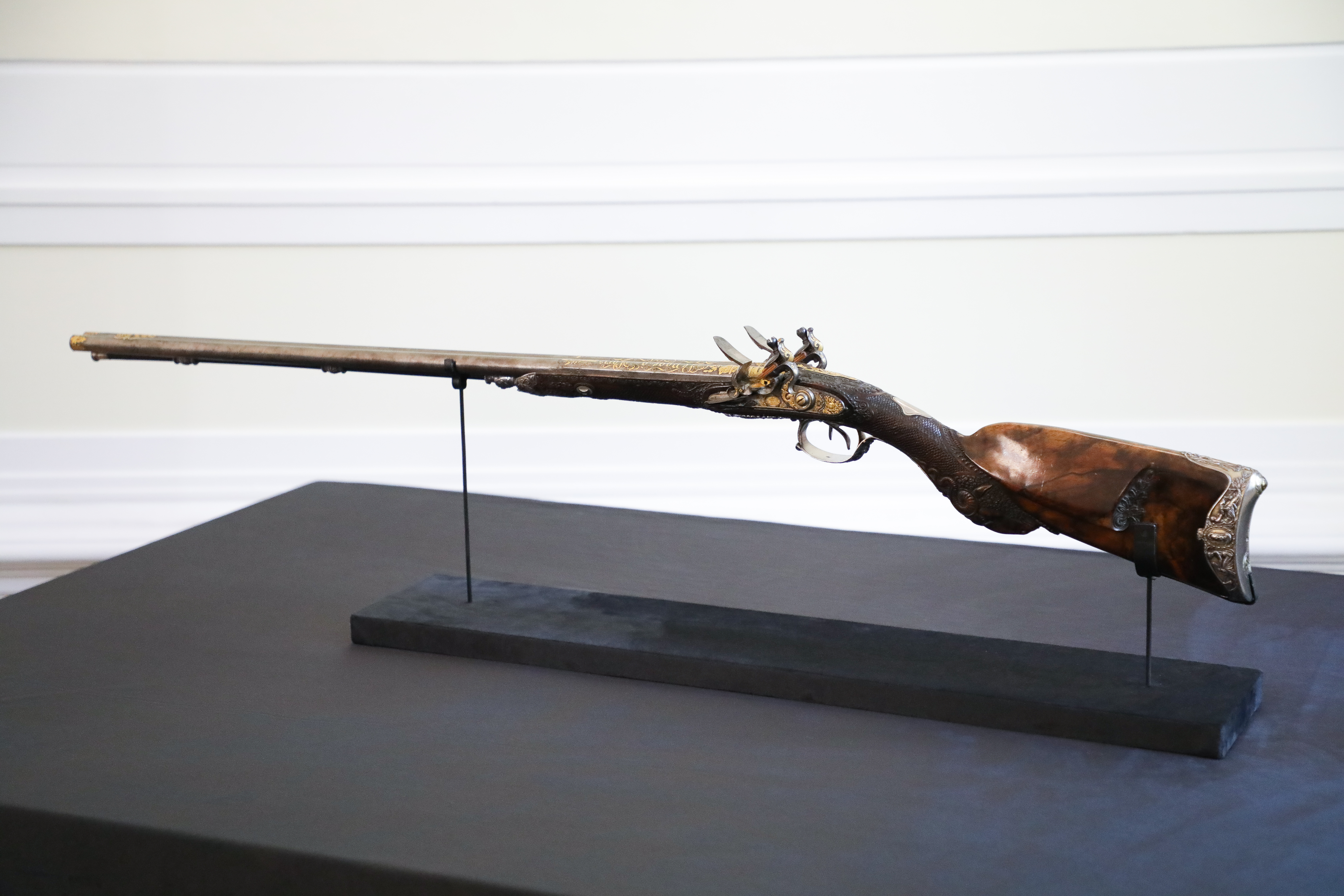 Ofiarowana według historycznych przekazów hrabiemu Wincentemu Krasińskiemu (1782–1858) przez cesarza Napoleona Bonapartego strzelba to bogato zdobiona broń myśliwska wykonana na początku XIX wieku w warsztacie słynnego francuskiego rusznikarza Jeana Lepage’a.