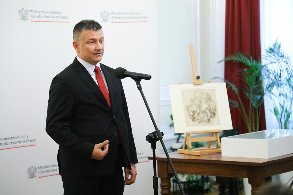 Czasami mamy do czynienia z taką sytuacją, że nie jesteśmy w stanie odzyskać np. na rynku niemieckim naszej własności, gdyż obowiązuje tam trzydziestoletni okres przedawnienia. Jest to niezgodne z prawem międzynarodowym. W tym miejscu chciałbym serdecznie podziękować wszystkim osobom, instytucjom i służbom, dzięki pomocy których działania restytucyjne polskiego resortu kultury mogą być tak owocne. Kieruję słowa szczególnego podziękowania do dotychczasowych posiadaczy, którzy dobrowolnie i bezkosztowo zwracają zaginione obiekty do ich macierzystych zbiorów. Tam, gdzie prawo jest nieskuteczne, bywa, że zwycięża dobra wola – zakończył minister kultury.