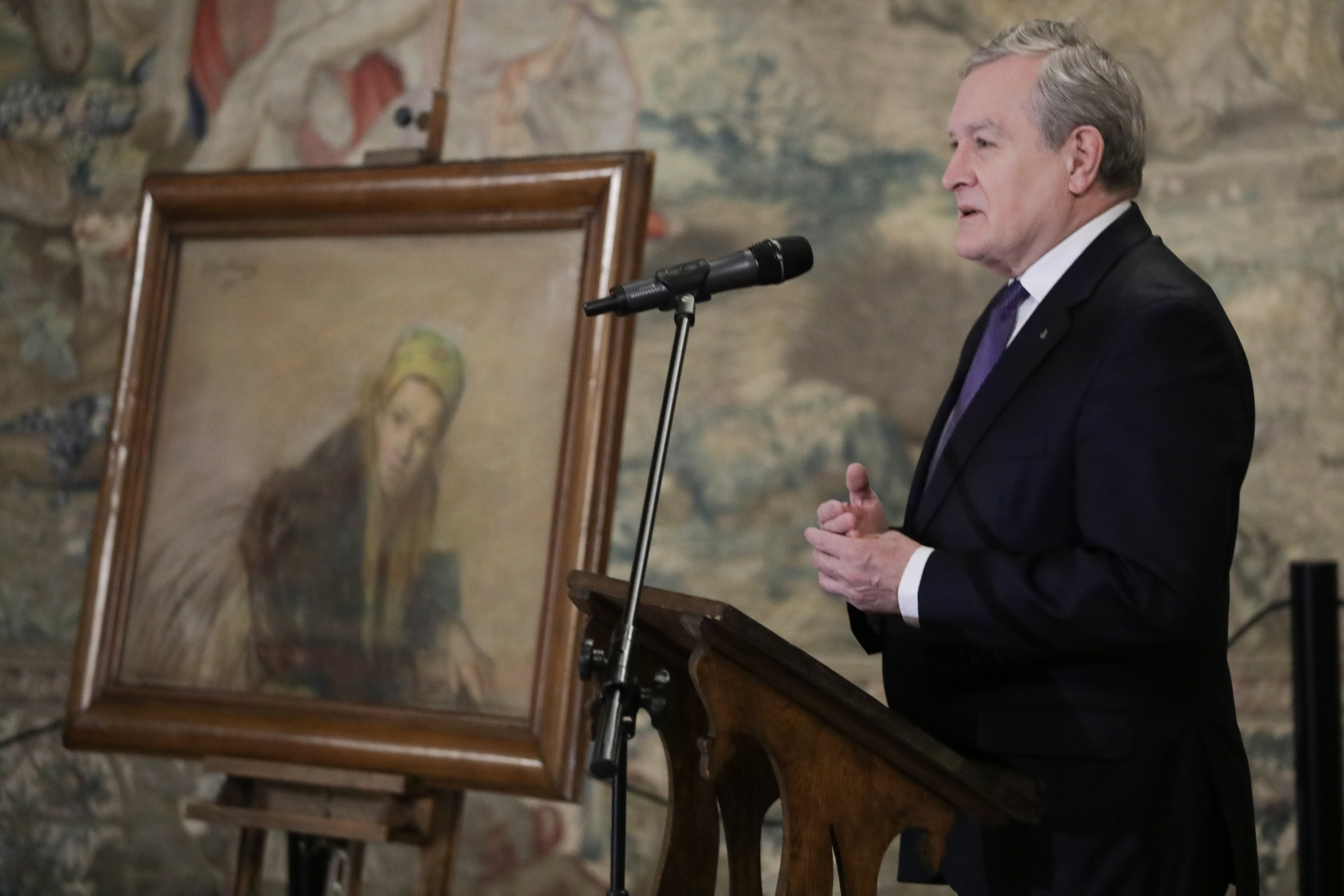 Przybliżając historię odnalezienia i odzyskania pastelu Wyczółkowskiego, który pojawił się na rynku dzieł sztuki w grudniu zeszłego roku, szef resortu kultury podkreślił zasługi osób zaangażowanych w ten proces.