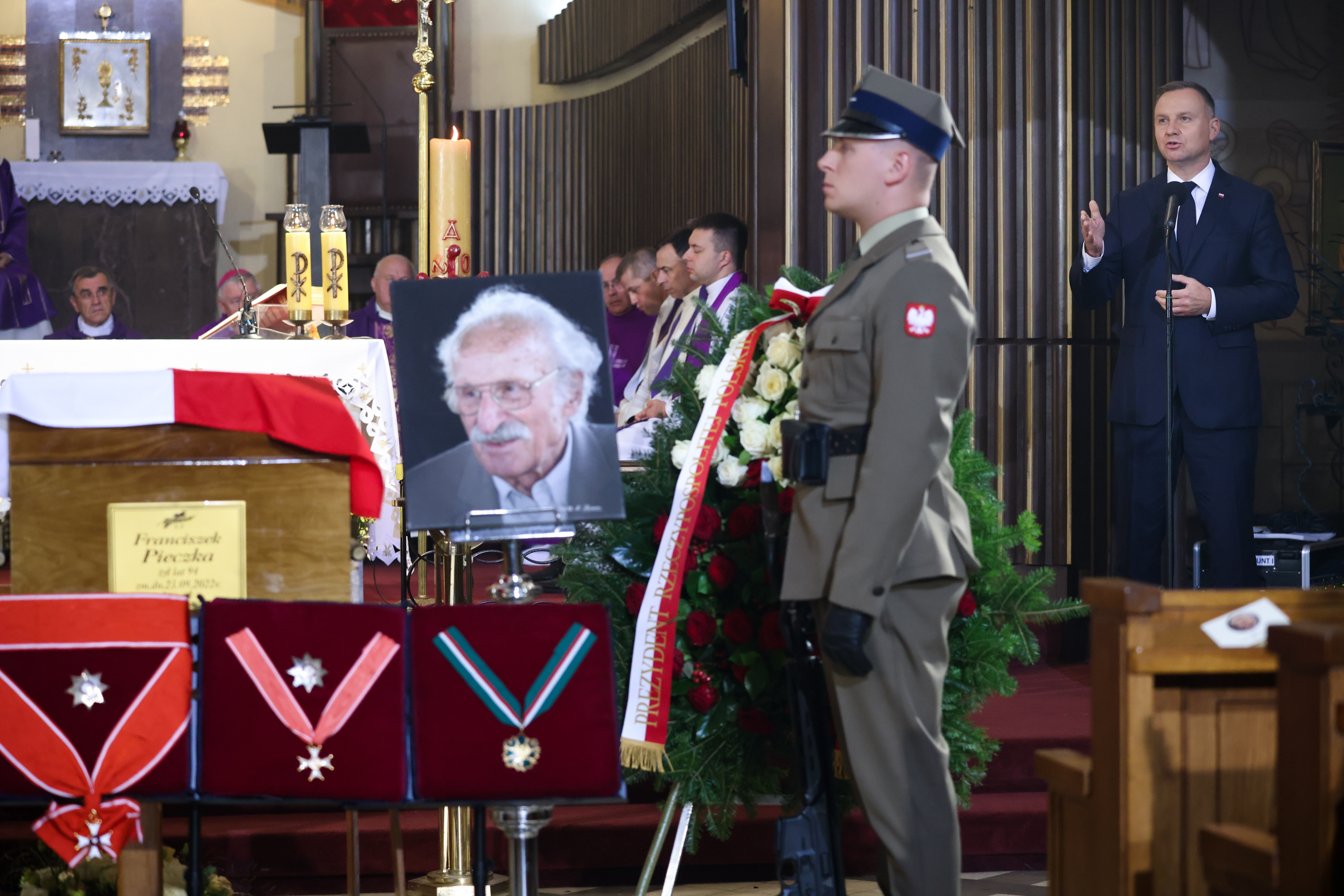 „Żegnamy wspaniałego człowieka, wielkiego aktora, mistrza słowa, nestora scen polskich zapamiętanego z wielu wybitnych kreacji teatralnych, filmowych i telewizyjnych. Jego ciepły, charakterystyczny głos jest rozpoznawany przez niemal każdego Polaka (…) Franciszek Pieczka był mistrzem zawodu, a jednocześnie człowiekiem pełnym skromności i życzliwości dla innych” - napisał wicepremier, minister kultury i dziedzictwa narodowego prof. Piotr Gliński w liście pożegnalnym odczytanym podczas uroczystości pogrzebowych przez wiceminister kultury Wandę Zwinogrodzką. Franciszek Pieczka zmarł 23 września w wieku 94 lat. Msza św. żałobna odbyła się w czwartek w Kościele Najświętszego Serca Pana Jezusa w Warszawie Falenicy.