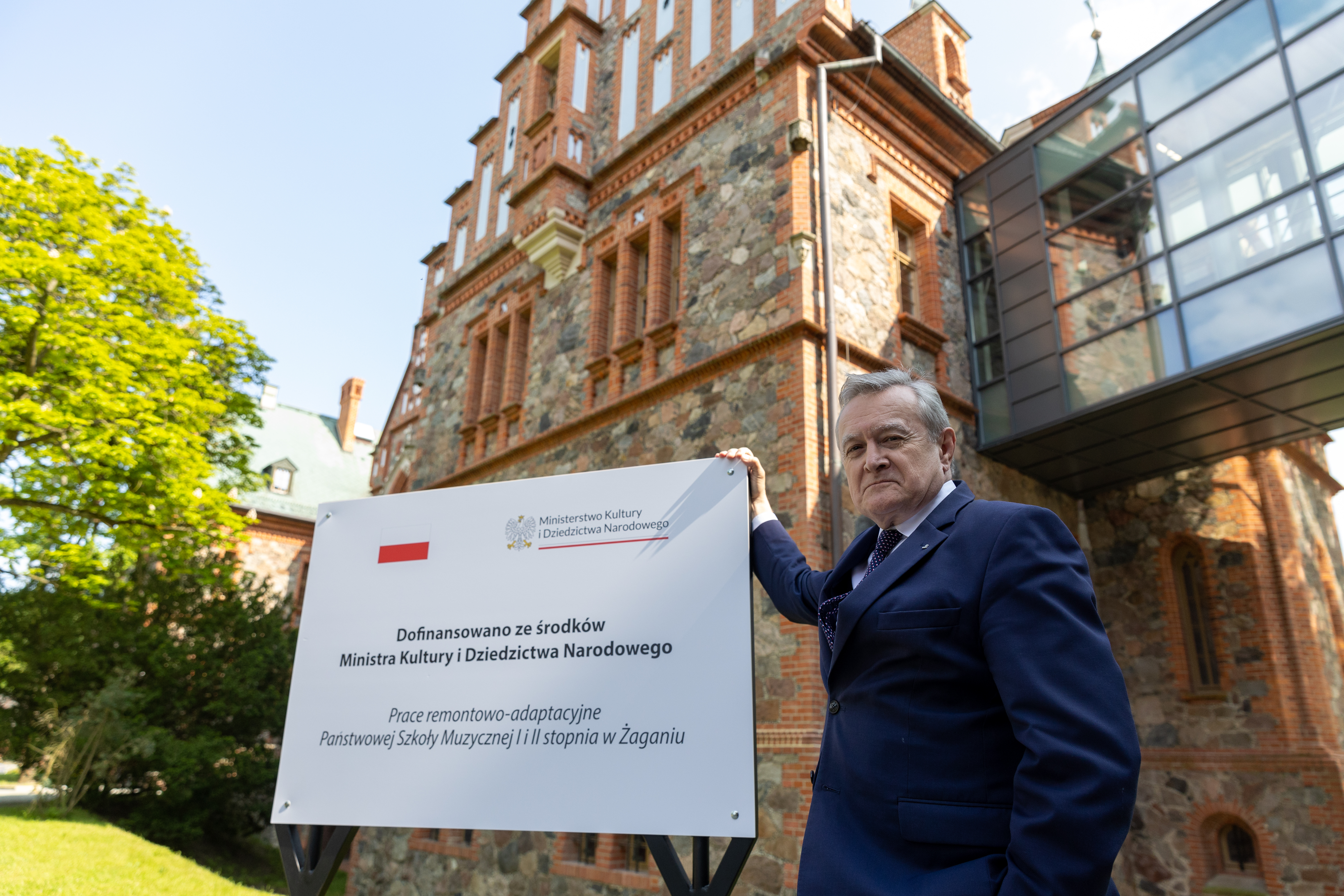 „Wspieramy rozwój instytucji kulturalnych tam, gdzie jest to konieczne, realizując zasadę zrównoważonego rozwoju - taka jest misja polskiej kultury. (…) Przystosowaliśmy budynek Państwowej Szkoły Muzycznej w Żaganiu do funkcji pedagogicznych. W tych odnowionych, zabytkowych, a teraz już także nowoczesnych wnętrzach szkoła będzie mogła się rozwijać” - powiedział wicepremier prof. Piotr Gliński podczas uroczystości otwarcia nowej siedziby Państwowej Szkoły Muzycznej I i II stopnia im. Henryka Wieniawskiego w Żaganiu. Inwestycja w zabytkowym neogotyckim budynku dawnego szpitala była jednym z największych wyzwań w ramach projektu termomodernizacji szkół artystycznych ze względu na skalę przeprowadzonych prac.
