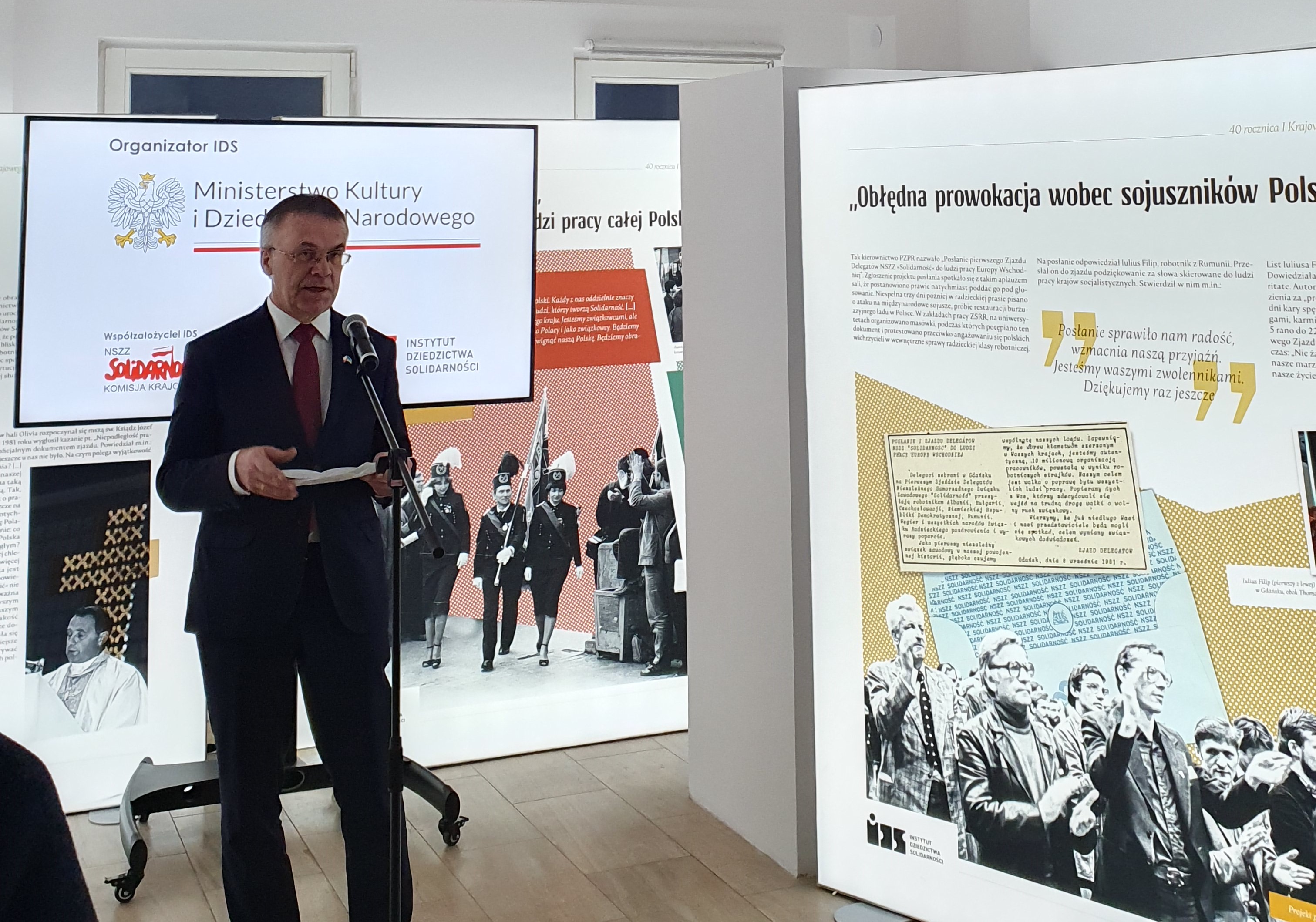 Zorganizowanie pracy nowej instytucji kultury to duże wyzwanie. Trzy lata temu podjął je pan dyrektor Mateusz Smolana. Podczas prac organizacyjnych Instytutu nastąpiły wydarzenia, których nikt w Polsce i na świecie się nie spodziewał. Mimo obiektywnych trudności spowodowanych pandemią COVID-19 początkowa faza organizowania Instytutu dzięki determinacji i zaangażowaniu dyrektora przebiegła bardzo sprawnie. Potrafił on zebrać odpowiednio przygotowany do realizacji zadań zespół specjalistów i zmotywować ich do osiągania wytyczonych celów. Doświadczenie zawodowe zespołu IDS i jego zaangażowanie w sprawy „Solidarności” pozwoliły na rozwój nowej, tak potrzebnej Polakom instytucji – podkreślił wiceminister kultury.