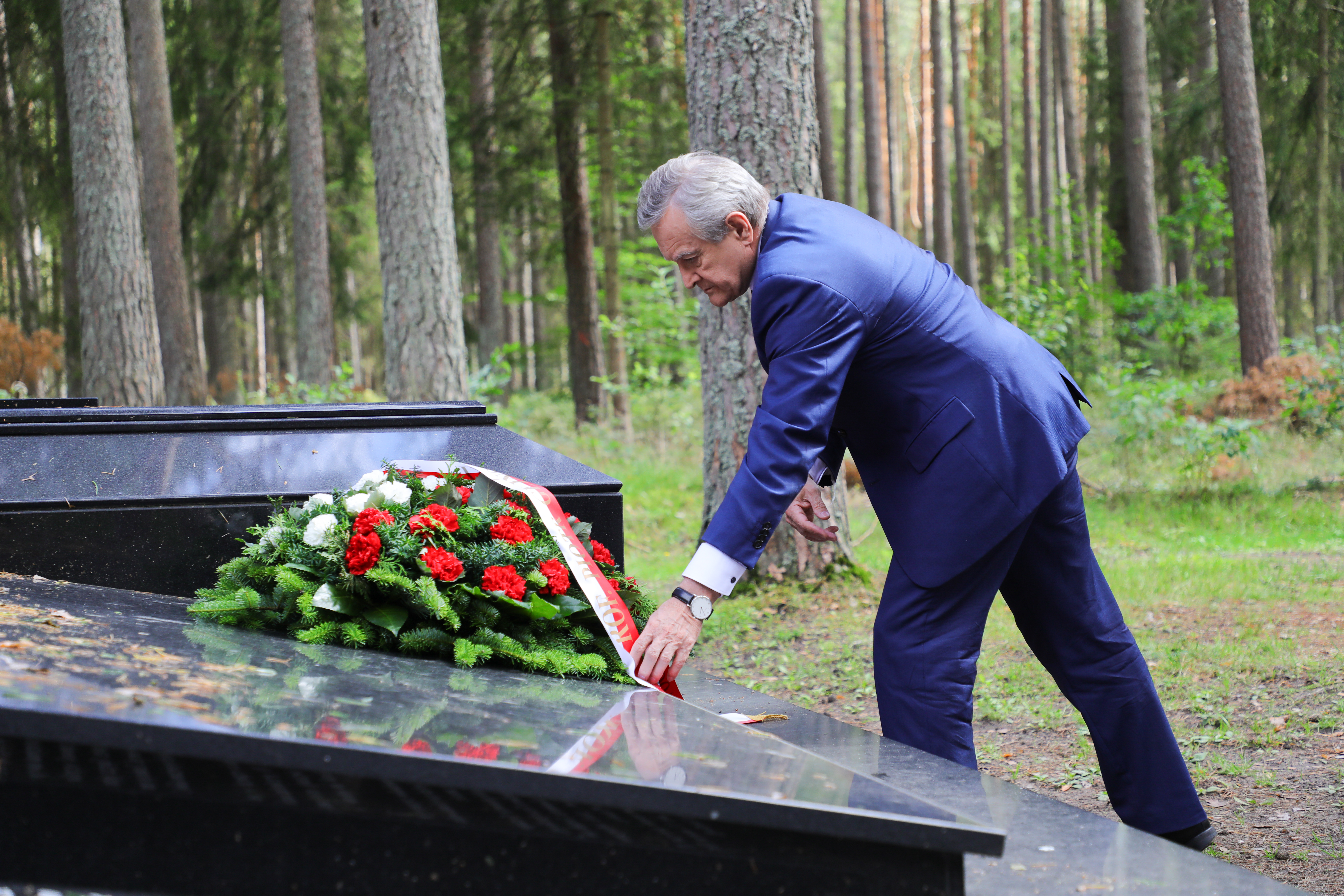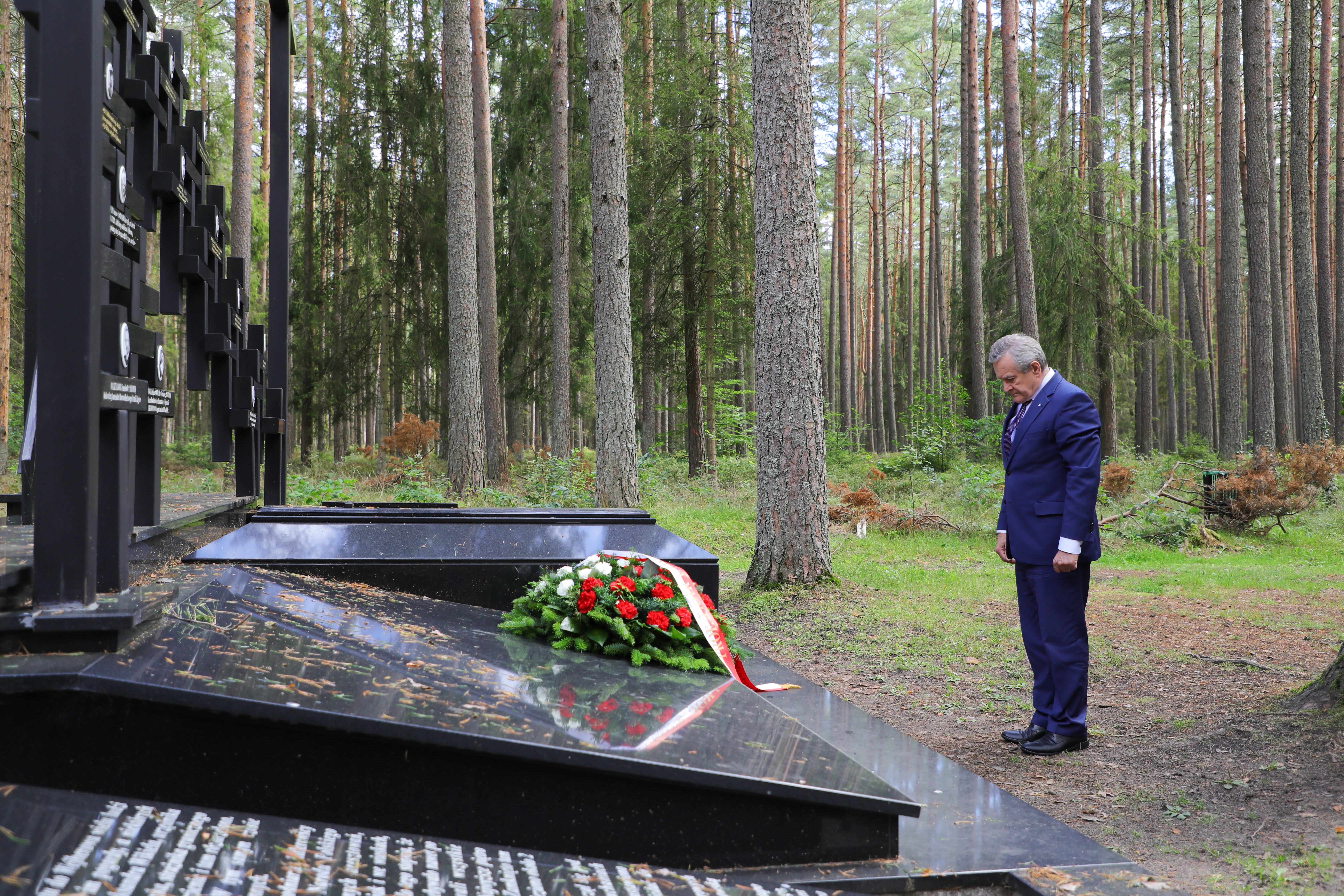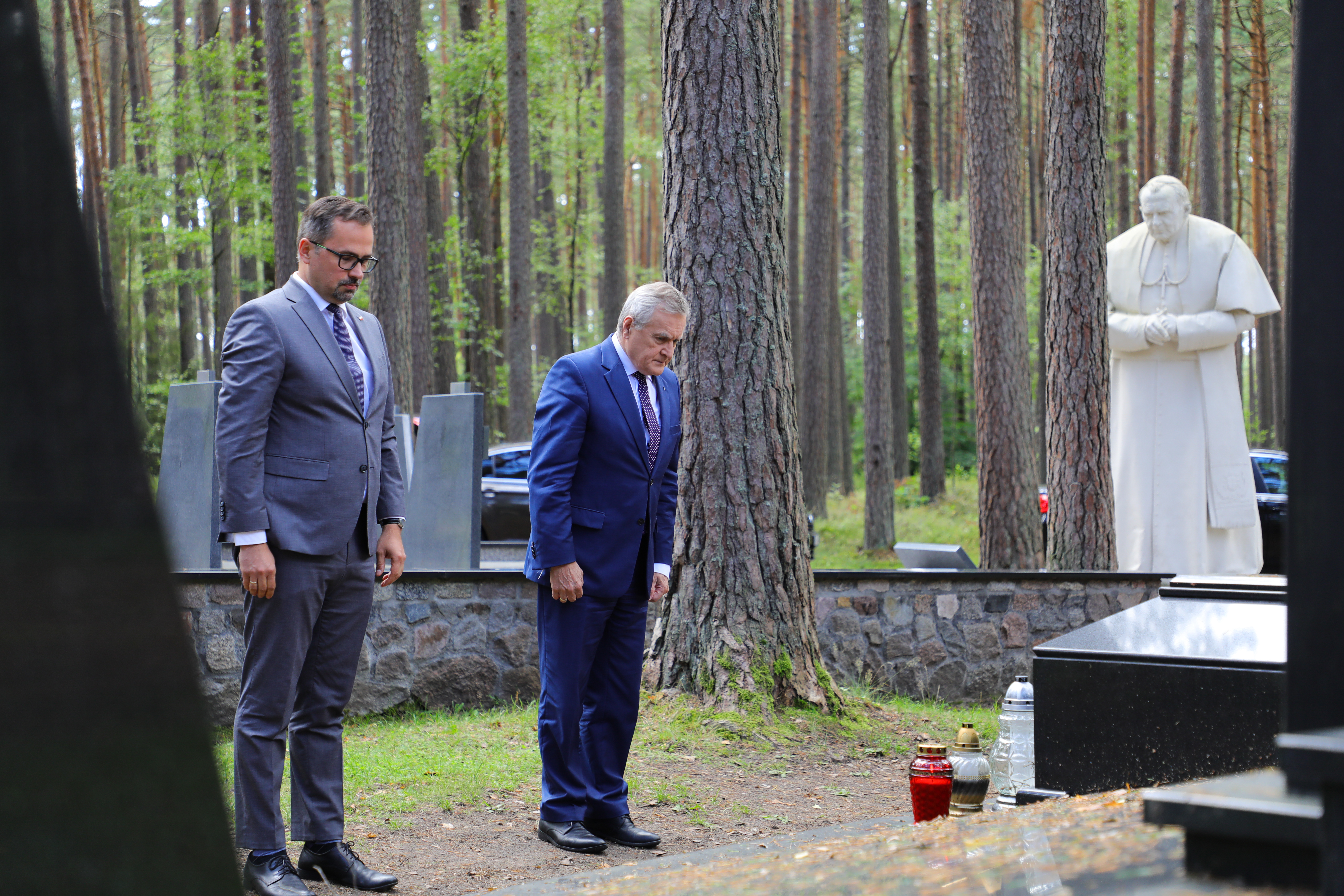 Przed uroczystością minister kultury i dziedzictwa narodowego złożył wieńce i zapalił znicze na grobach pomordowanych Polaków przy Sanktuarium Piaśnickim znajdującym się w Lesie Piaśnickim niedaleko Wejherowa.