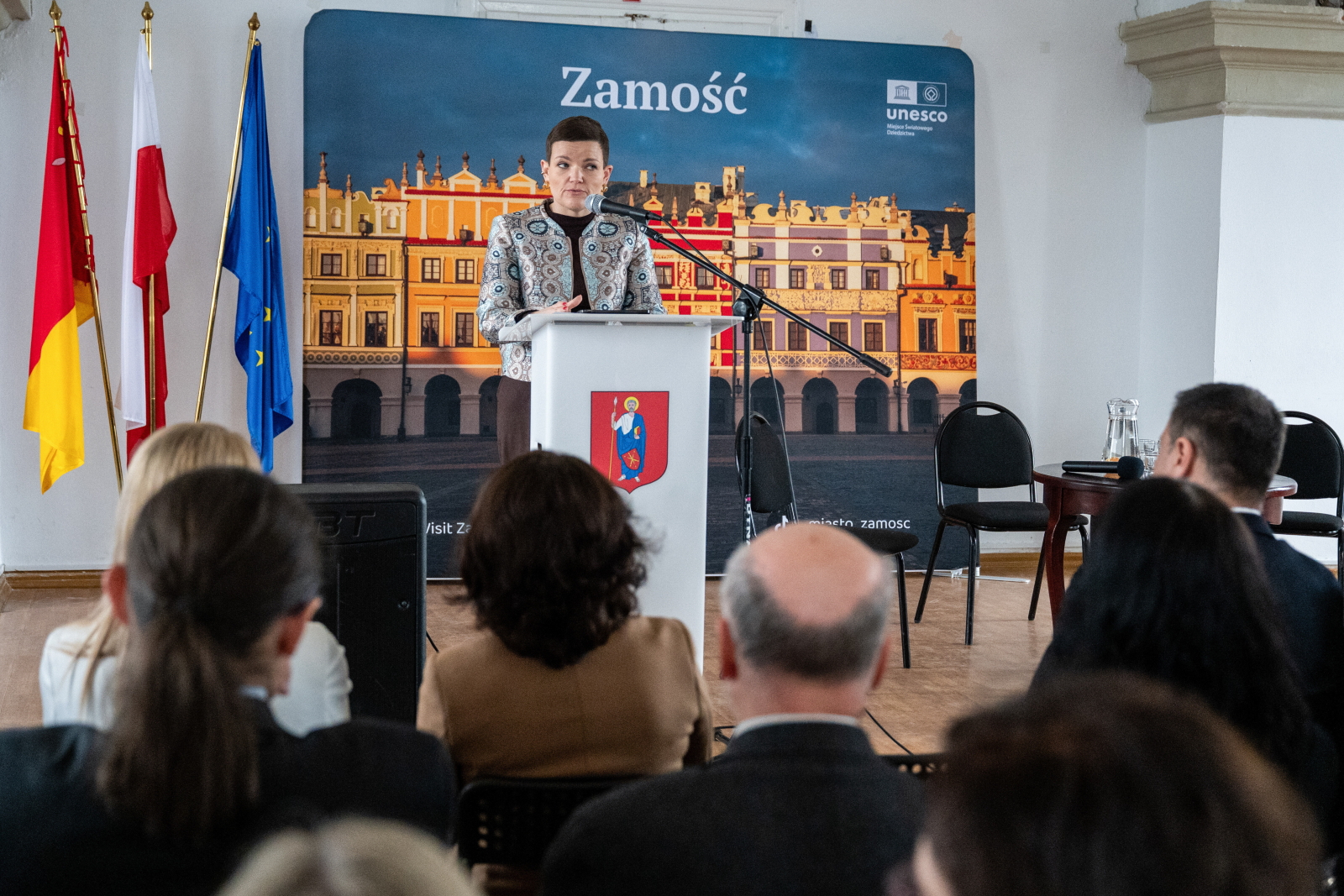Zamość to nie są pojedyncze obiekty, dlatego musimy traktować miasto jako całość, w której równie ważne są relacje przestrzenne, panoramy czy przedpola widokowe. Nowe inwestycje w infrastrukturę techniczną czy zabudowę miasta wpływają na jego integralność. W związku z tym potrzebujemy pełnej wiedzy i otwartości w procesie planowania – mówiła Marta Cienkowska, ministra kultury i dziedzictwa narodowego podczas otwarcia konferencji. – Projekty dotyczące przyszłości Pałacu Zamoyskich muszą być przedmiotem szerokiej debaty. Tylko w ten sposób możemy uniknąć błędów, które w przypadku tak wyjątkowego miejsca byłyby nieodwracalne. Ważny jest też głos mieszkańców – dodała.
