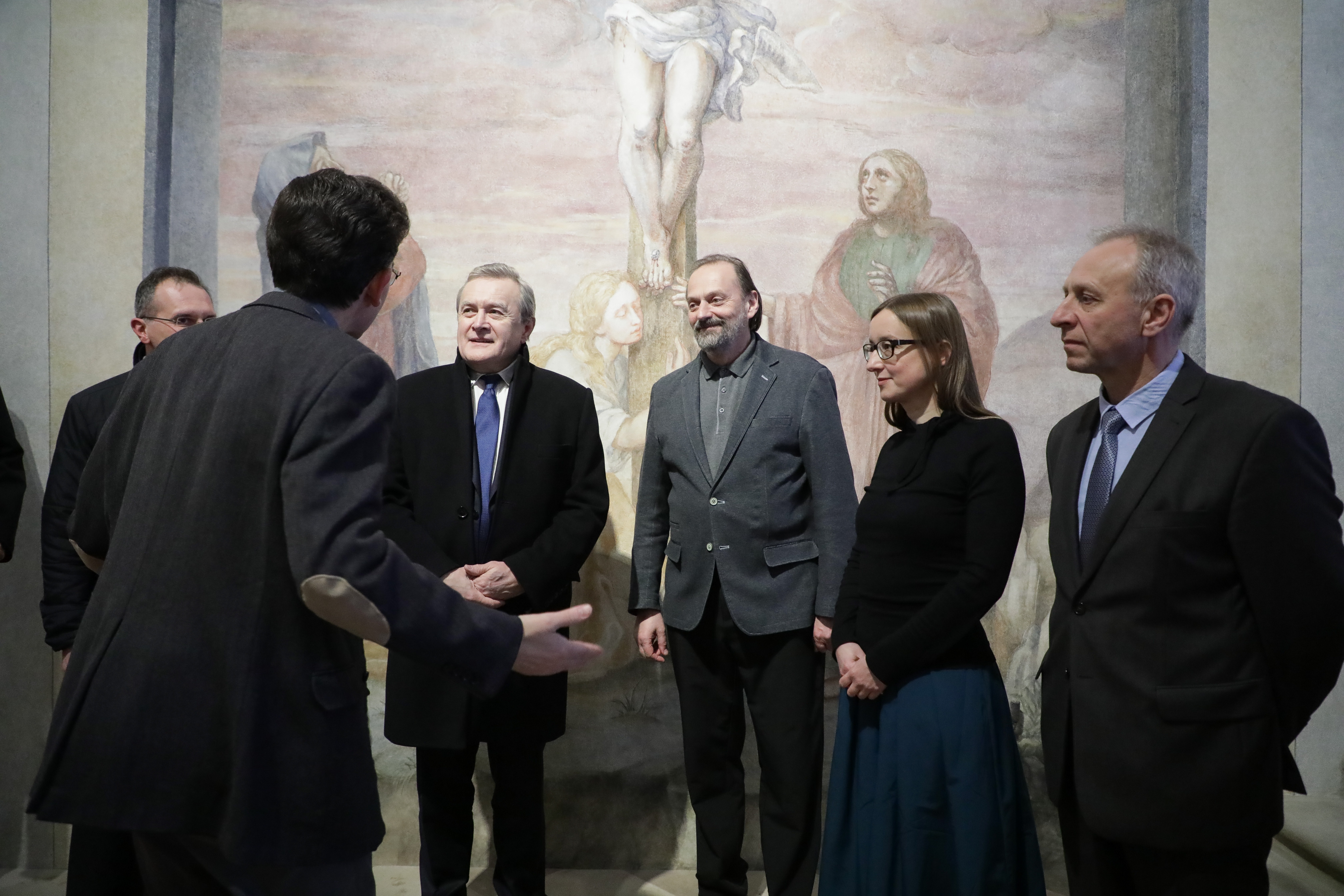 Wicepremier prof. Piotr Gliński, zwiedzając odrestaurowaną kryptę w kościele pw. Przemienienia Pańskiego, zwrócił uwagę na kunszt osób, dzięki którym polichromie Andrzeja Radwańskiego zostały przywrócone:
