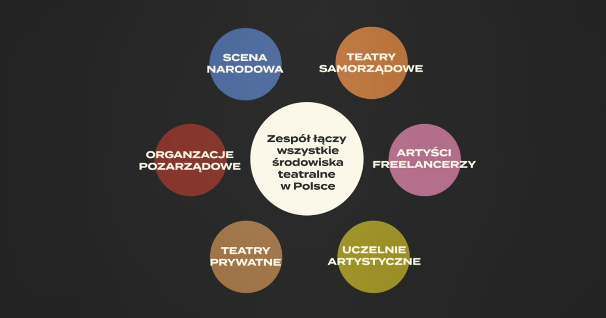 Głównym zadaniem Zespołu Eksperckiego ds. sytuacji teatrów w czasie pandemii COVID-19 było wypracowanie konkretnych rozwiązań prawnych, mających chronić osoby związane zawodowo ze sceną oraz instytucje i organizacje artystyczne przed negatywnymi skutkami funkcjonowania w sytuacji zagrożenia epidemicznego. W prace Zespołu zaangażowali się praktycy działający w różnych obszarach teatru, muzyki i tańca, przedstawiciele związków zawodowych oraz stowarzyszeń, a także organizatorzy życia teatralnego w Polsce.