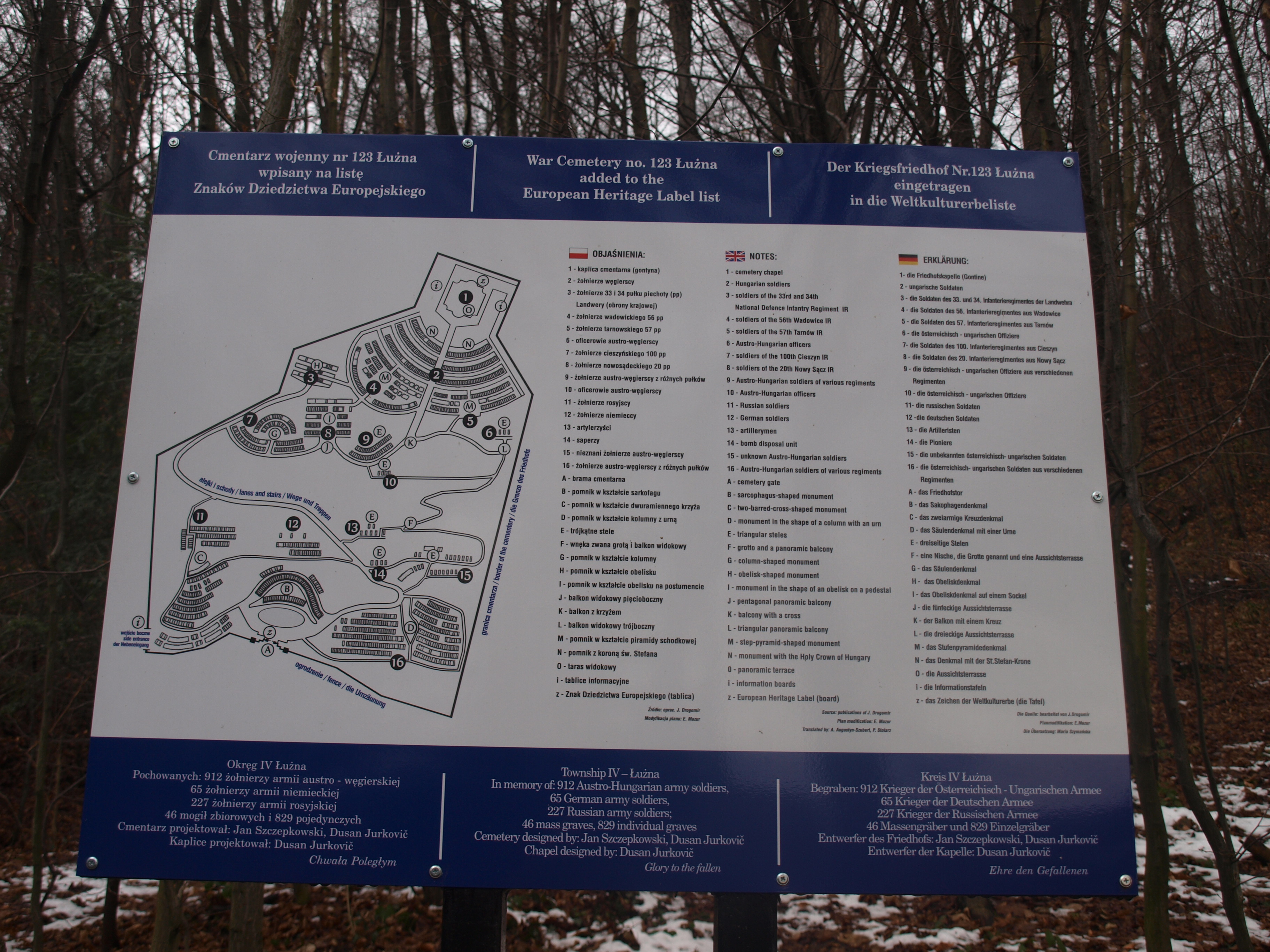Cmentarz wojenny nr 123, jako miejsce promujące wartości, takie jak godność ludzka, równość, pojednanie i pokój oraz braterstwo różnych ludzi i różnych narodów, został wyróżniony Znakiem Dziedzictwa Europejskiego w 2016 roku.