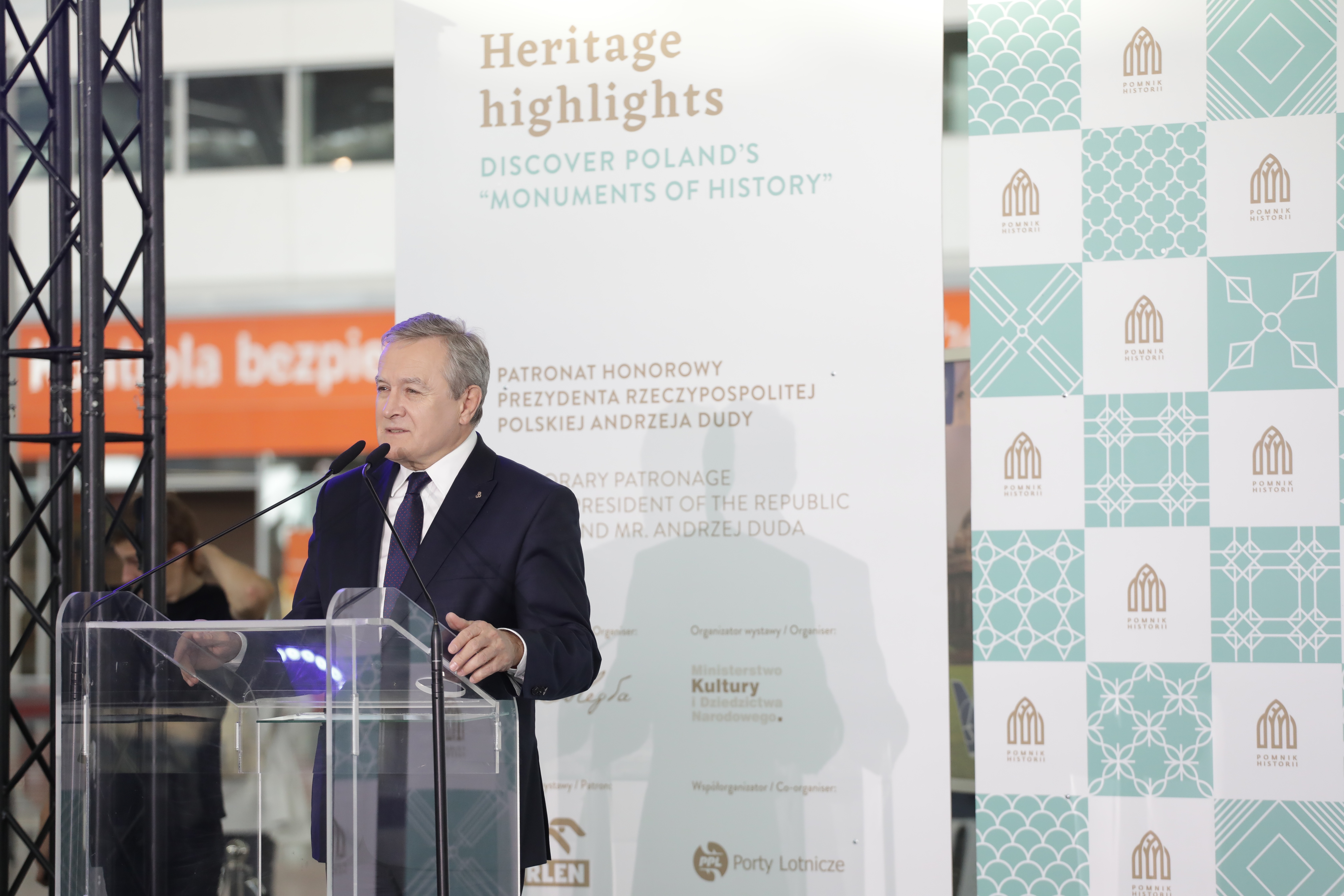 Pomniki Historii to są najpiękniejsze, najcenniejsze polskie zabytki – mówił wicepremier, minister kultury i dziedzictwa narodowego prof. Piotr Gliński podczas wernisażu wystawy "Najcenniejsze dziedzictwo. Odkryj nasze Pomniki Historii". Wystawa została zorganizowana przez Biuro Programu Niepodległa we współpracy z Ministerstwem Kultury i Dziedzictwa Narodowego, Narodowym Instytutem Dziedzictwa i Przedsiębiorstwem Państwowym „Porty Lotnicze” oraz dzięki mecenatowi PKN Orlen SA. Wernisaż wystawy uświetnił występ Kapeli Fedaków.