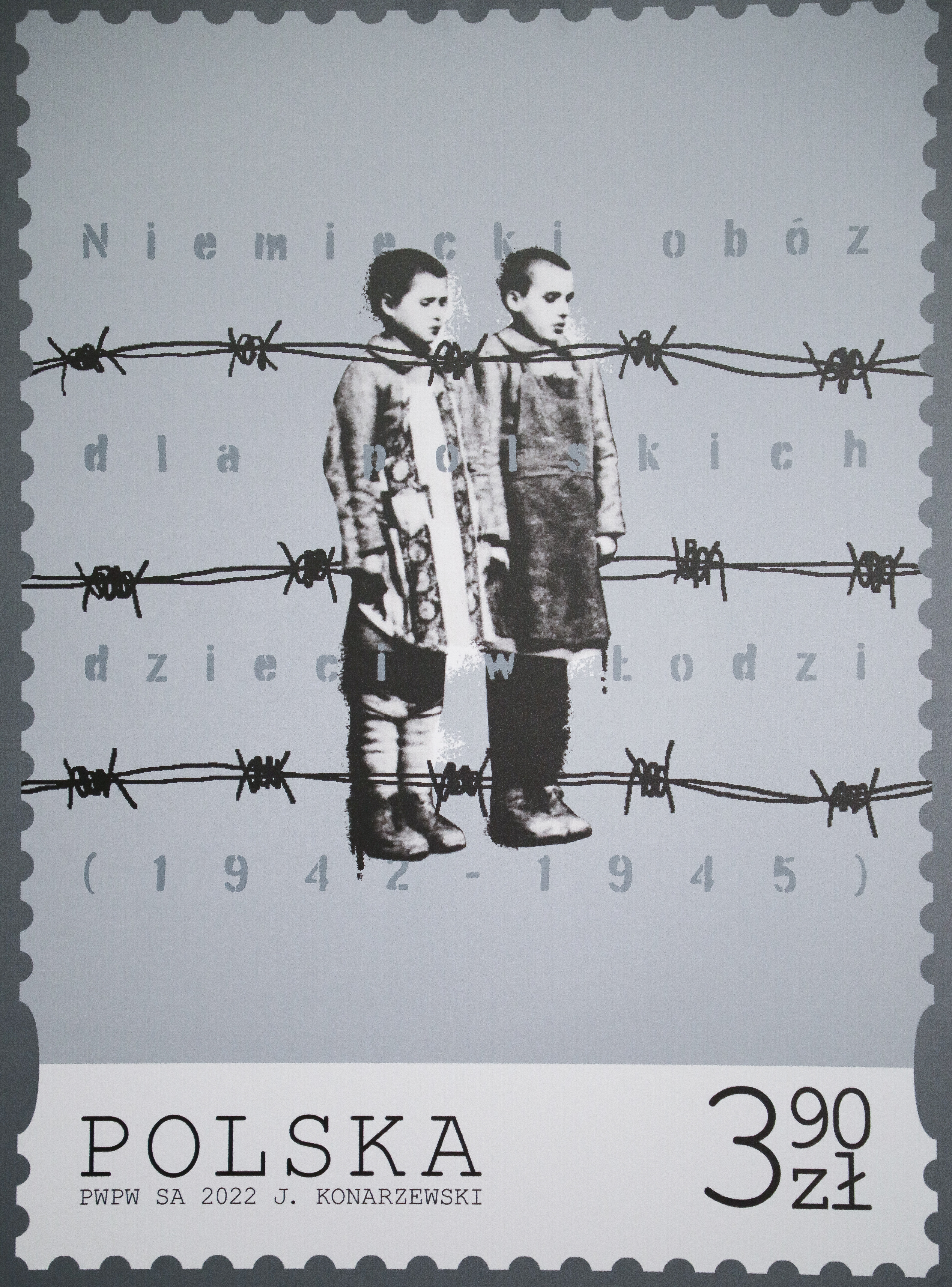 Emisja znaczka jest kolejnym dowodem pamięci o ofiarach obozu przy ul. Przemysłowej w Łodzi. Znaczek przedstawia dwie dziecięce postaci za drutem kolczastym, które symbolizują cierpienie małych więźniów niemieckiego obozu koncentracyjnego. Autorem projektu jest Jan Konarzewski.
