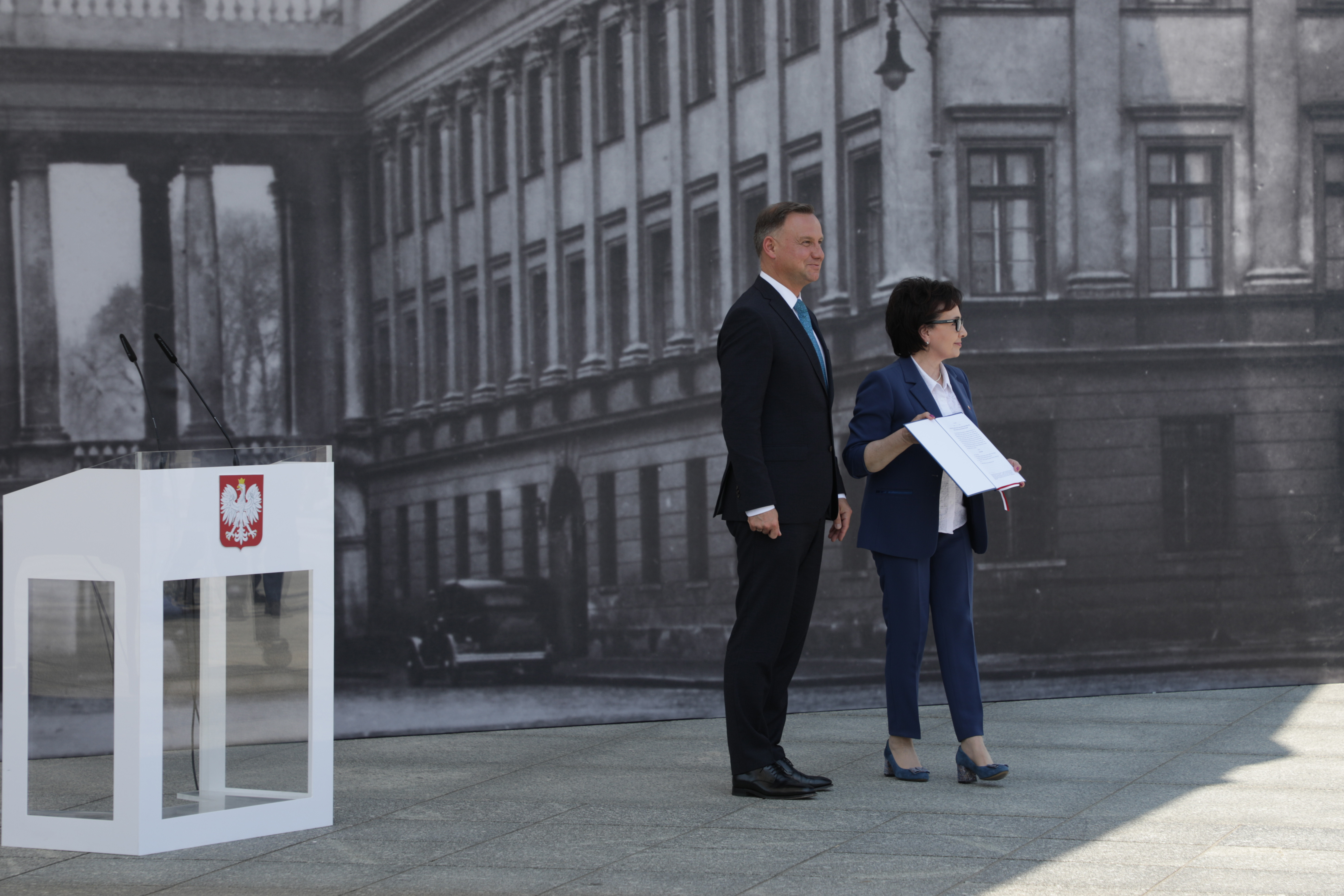- Odbudowa Pałacu Saskiego to ogromne dzieło o charakterze symbolicznym, które ma zwieńczyć proces odbudowywania stolicy. Rozpoczynamy inwestycję ponad wszelkimi podziałami, dzięki której Warszawa odzyska swój dawny, a jednocześnie nowy blask - powiedział Prezydent Andrzej Duda podczas uroczystości przekazania na ręce Marszałek Sejmu Elżbiety Witek projektu Ustawy o przygotowaniu i realizacji inwestycji w zakresie odbudowy Pałacu Saskiego, Pałacu Brühla oraz kamienic przy ulicy Królewskiej w Warszawie. W wydarzeniu na placu Marszałka Józefa Piłsudskiego wziął udział wicepremier, minister kultury, dziedzictwa narodowego i sportu prof. Piotr Gliński.