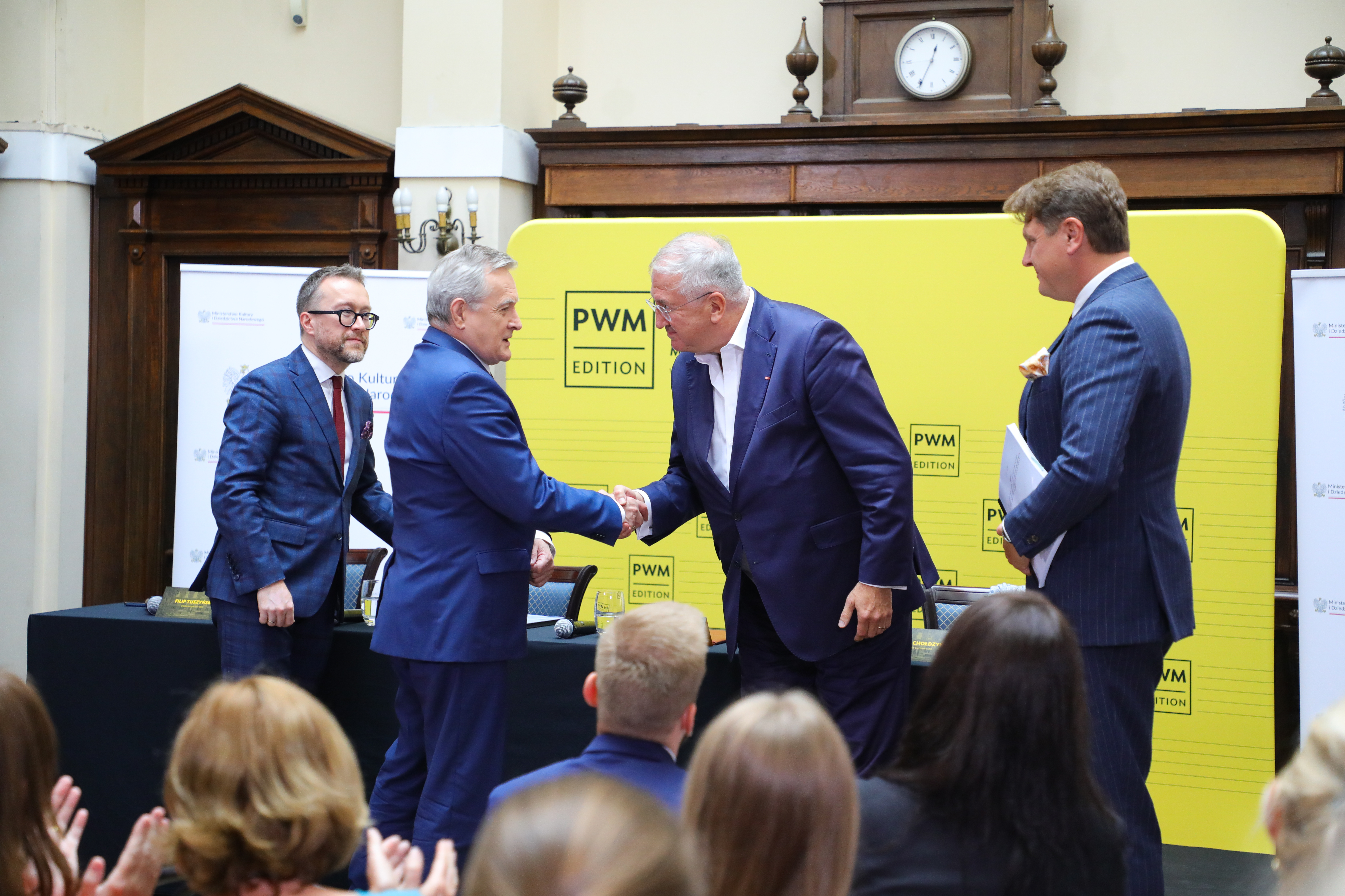 Warto wspomnieć o spektakularnym projekcie „100 na 100. Muzyczne dekady wolności”, w ramach którego powstawały nowe, unikalne nagrania dotyczące poszczególnych lat polskiej niepodległości. Wieloletni projekt „Dziedzictwo Muzyki Polskiej” to z kolei świadectwo dbałości o zapomnianą spuściznę muzyczną powstałą w czasach zaborów. Wspieramy PWM m.in. po to, aby mieć dostęp do publikacji nutowych, aby odkrywać mniej znanych XIX-wiecznych muzyków. Instytucja ta jest także organizatorem „Dni Edukacji Muzycznej”, prowadzi portal pn. „Polska Biblioteka Muzyczna” udostępniający zdigitalizowane materiały nutowe, a w Japonii organizuje konkurs pianistyczny dla dzieci i młodzieży pt. „Muzyka z kraju Chopina” – przypomniał minister kultury.