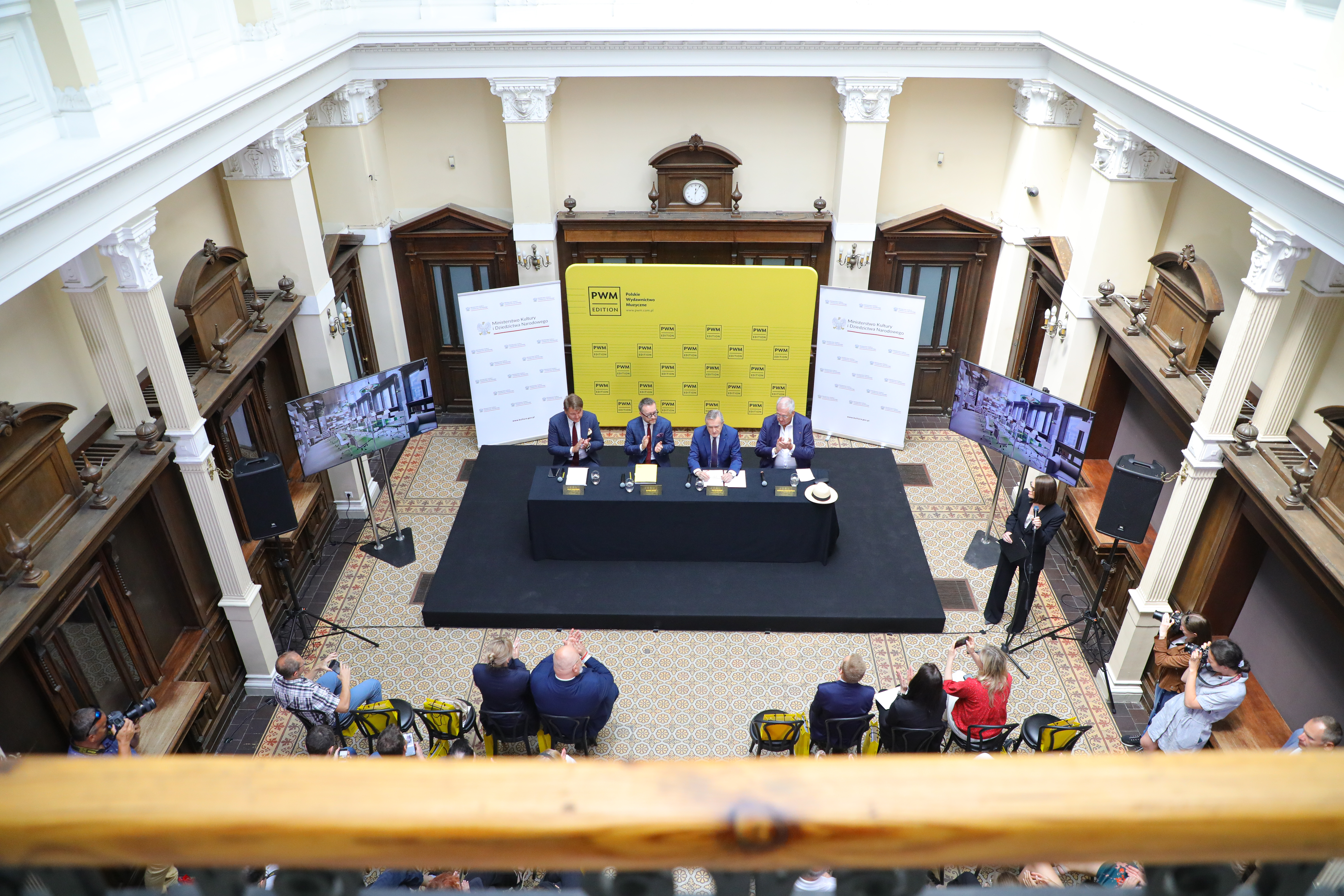 „Przebudowa warszawskiej siedziby Polskiego Wydawnictwa Muzycznego to inwestycja od dawna przygotowywana i oczekiwana, która przeniesie tę instytucję w XXI wiek. Chcemy, aby mogła ona funkcjonować w nowoczesnych wnętrzach, ale zachowujących walory zabytkowe” – powiedział wicepremier, minister kultury i dziedzictwa narodowego prof. Piotr Gliński podczas konferencji prasowej poświęconej renowacji warszawskiej siedziby Polskiego Wydawnictwa Muzycznego, która mieści się w zabytkowym budynku przy ul. Fredry 8.