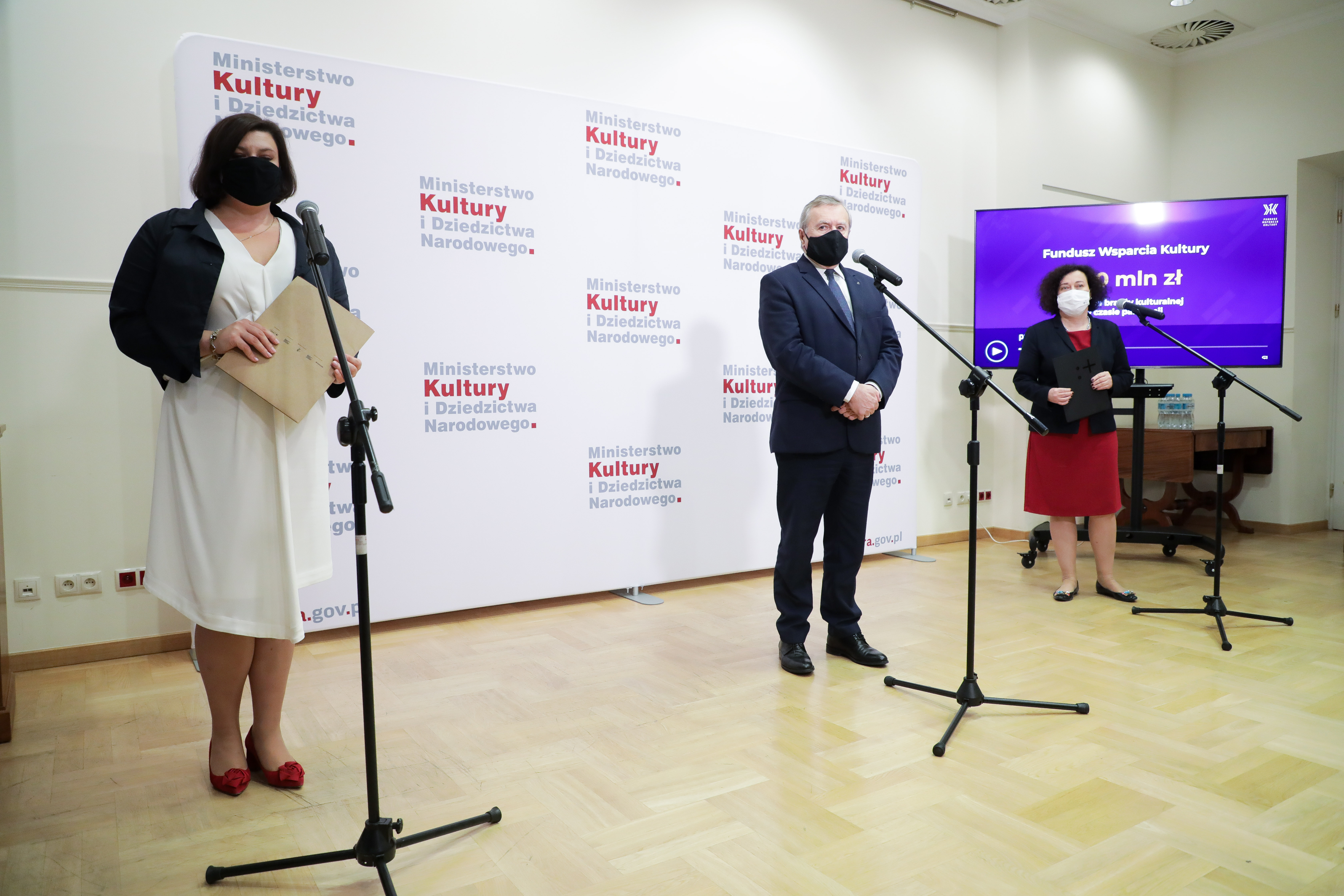 Fundusz Wsparcia Kultury to program pomocy dla branży kulturalnej na bezprecedensową skalę. Z dofinansowania skorzystają zarówno instytucje samorządowe, teatry czy filharmonie państwowe, ale także organizacje niezależne działające w formie stowarzyszeń czy fundacji oraz przedsiębiorcy. Fundusz to dla nich prawdziwy pomocowy krok milowy. Pieniądze te pozwolą artystom i twórcom dalej pracować i ze spokojem planować zawodowe działania na najbliższe miesiące - dodał wicepremier, minister kultury i dziedzictwa narodowego, prof. Piotr Gliński.