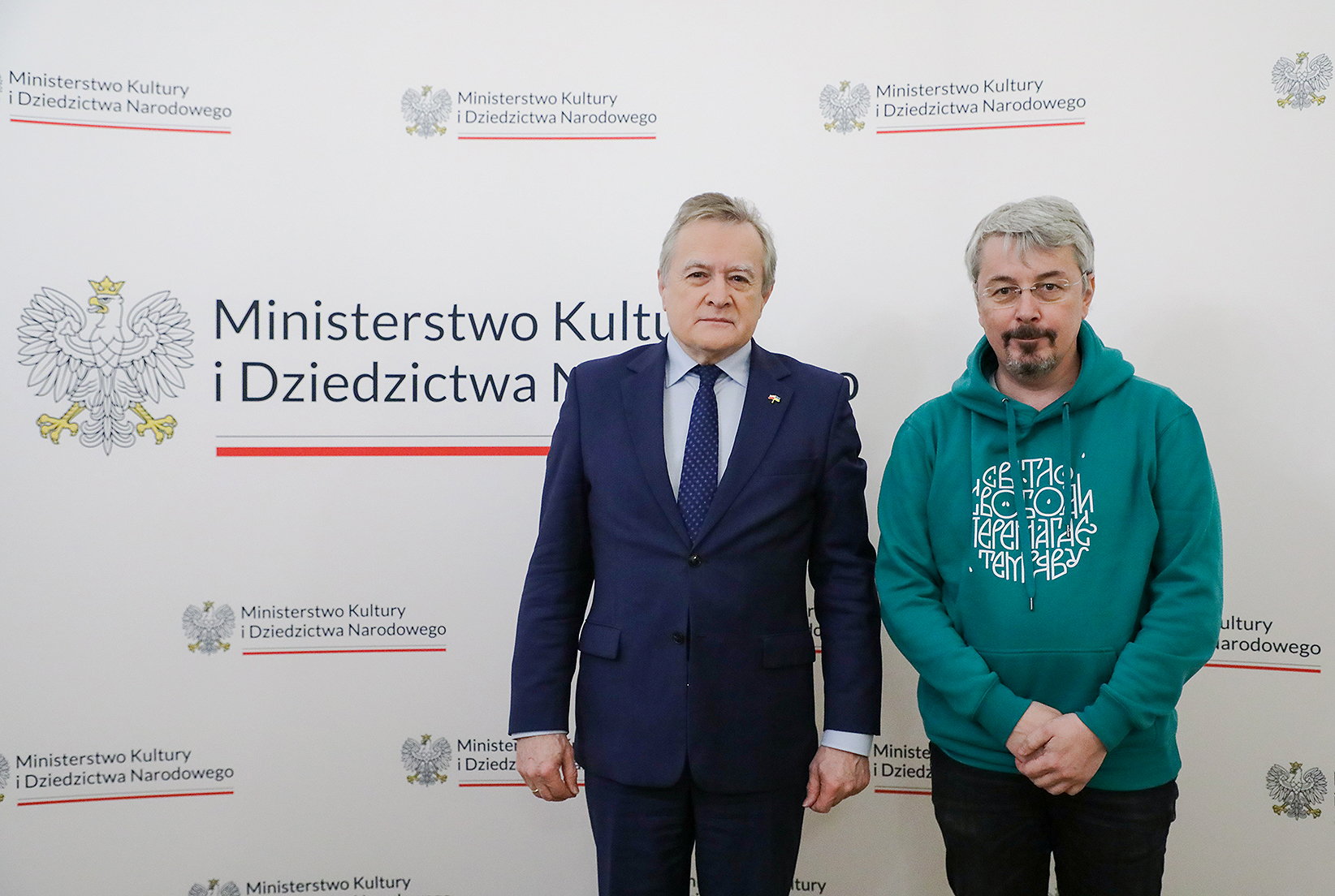 Wicepremier, minister kultury i dziedzictwa narodowego prof. Piotr Gliński spotkał się w piątek w Warszawie z ministrem kultury i polityki informacyjnej Ukrainy Ołeksandrem Tkaczenką. Tematem roboczego spotkania była dalsza współpraca Polski i Ukrainy w zakresie wspierania ochrony dziedzictwa kulturowego na Ukrainie, działalność Funduszu Trójkąta Lubelskiego na Rzecz Digitalizacji Dziedzictwa Kulturowego oraz potrzeba bardziej intensywnej międzynarodowej współpracy w obszarze przeciwdziałania rosyjskiej propagandzie.