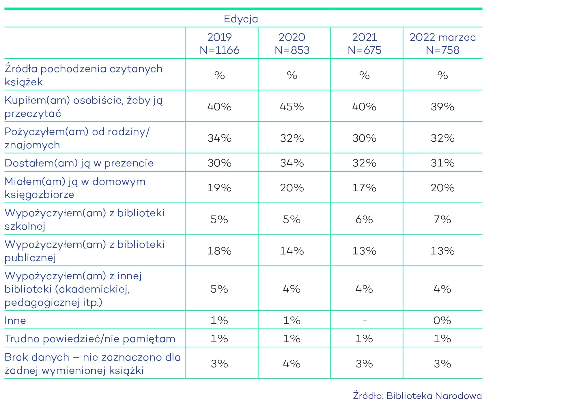 Najczęstszym źródłem czytanych książek są zakupy, przy czym w czasie pandemii wzrosło znaczenie sprzedaży online.