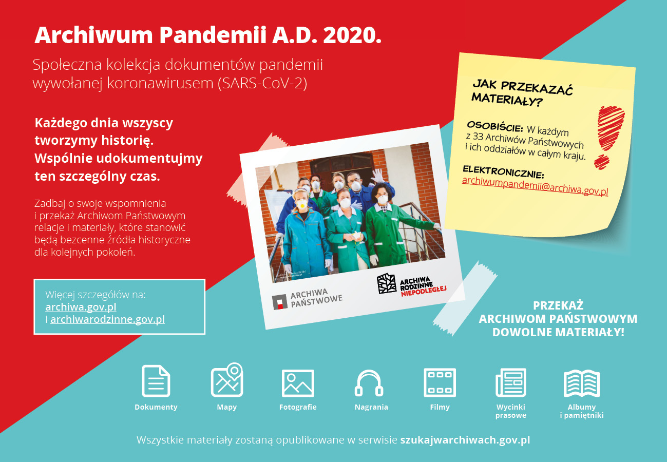 Więcej informacji na temat akcji na stronie www.archiwa.gov.pl w zakładce „Archiwum Pandemii”.