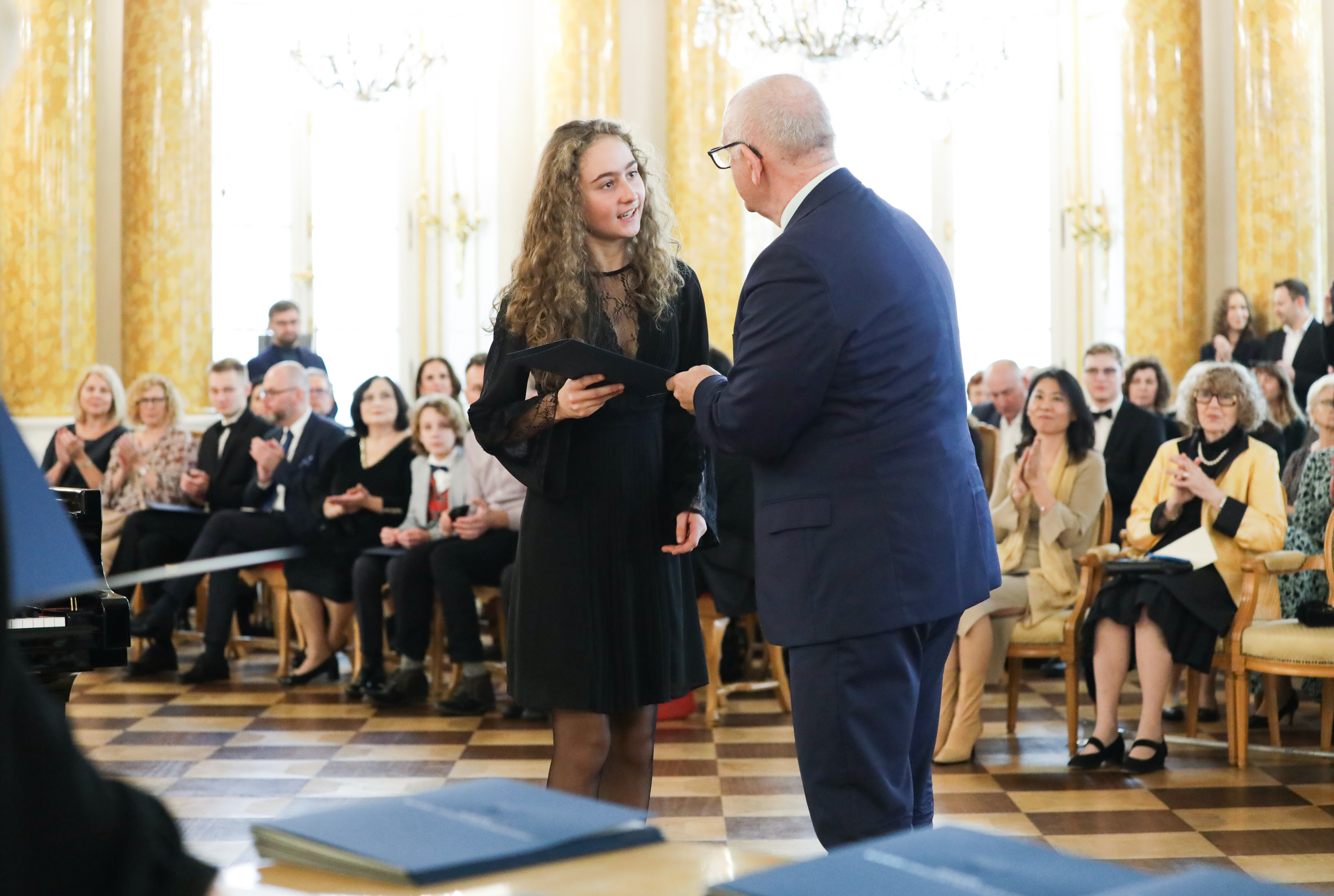 76 uczniów szkół baletowych, muzycznych i plastycznych II stopnia z całej Polski odebrało w środę dyplomy potwierdzające przyznanie stypendium Ministra Kultury i Dziedzictwa Narodowego. „Cieszę się, że Ministerstwo może Wam towarzyszyć w pierwszych krokach ku artystycznym sukcesom. Mam nadzieję, że dzięki rządowej opiece będzie Wam łatwiej spełnić marzenia o pięknej artystycznej karierze” – napisała wiceminister kultury i dziedzictwa narodowego Wanda Zwinogrodzka w liście odczytanym przez dyrektora Departamentu Szkolnictwa Artystycznego Jarosława Wartaka podczas uroczystości, która odbyła się na Zamku Królewskim w Warszawie.