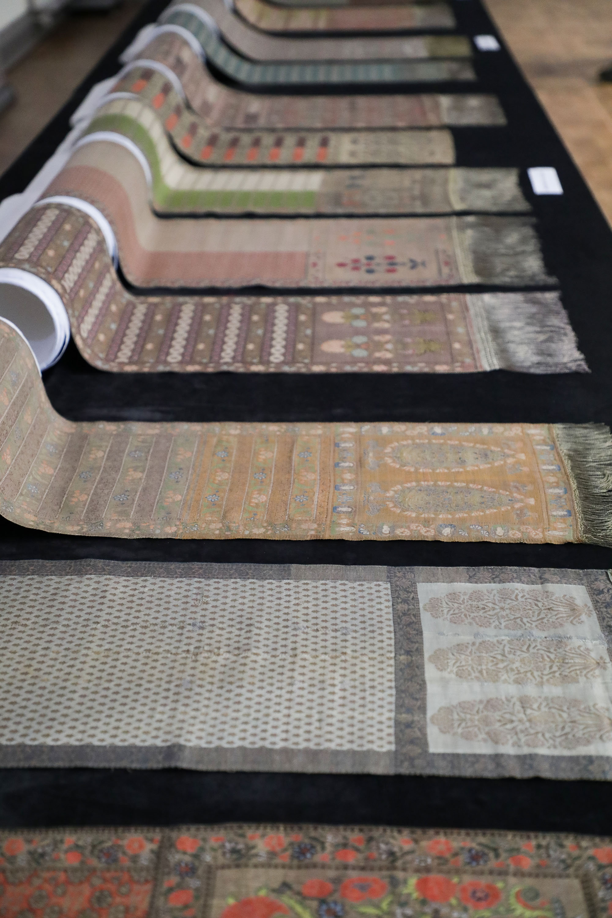 Oprócz dwóch pasów lyońskich, wykonanych z jedwabiu, wszystkie pozostałe utkano z użyciem srebrnych i złotych nici. Pasy reprezentują również różne style i motywy dekoracji. Cztery pasy mają bardzo ciekawą proweniencję, pochodzą bowiem z kolekcji Władysława Augusta Kościelskiego (1886-1933), wydawcy, poety i mecenasa sztuki. Trzy z nich, na co wskazują doszyte metki, mogły być zgłoszone na prestiżową Międzynarodową Wystawę Sztuki Perskiej w Londynie w 1931 r. Można przypuszczać, że ostatecznie na ekspozycję trafił tylko jeden z nich – indyjski pas, ponieważ pozostałe nie figurują w katalogu wystawy.
