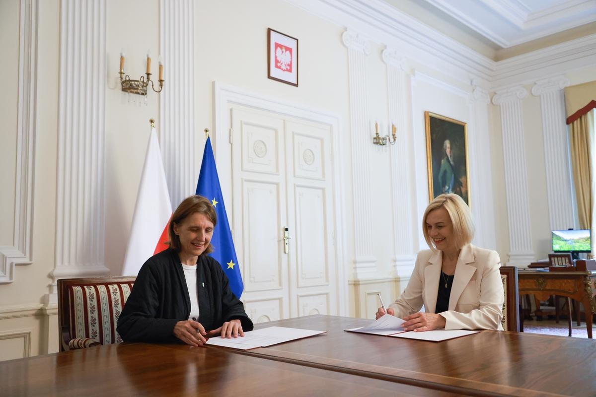 W siedzibie Ministerstwa Kultury i Dziedzictwa Narodowego odbyło się uroczyste przekazanie aneksu do umowy w sprawie przedłużenia współprowadzenia Teatru im. Stefana Żeromskiego w Kielcach. Dokument został podpisany przez Ministrę Kultury i Dziedzictwa Narodowego, Hannę Wróblewską oraz Województwo Świętokrzyskie, reprezentowane przez Marszałka Województwa Świętokrzyskiego Renatę Janik oraz Członka Zarządu Województwa Świętokrzyskiego Anitę Koniusz.