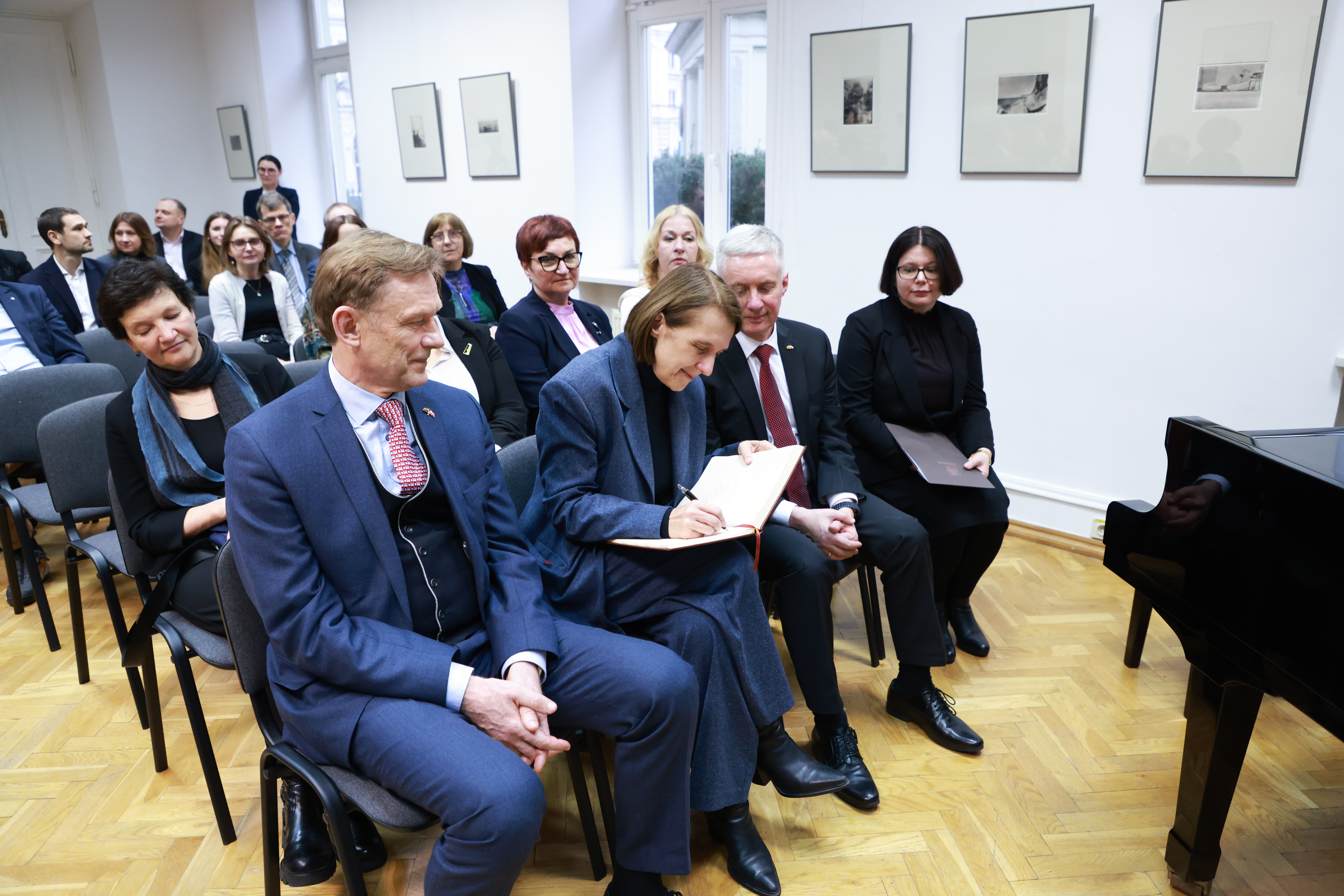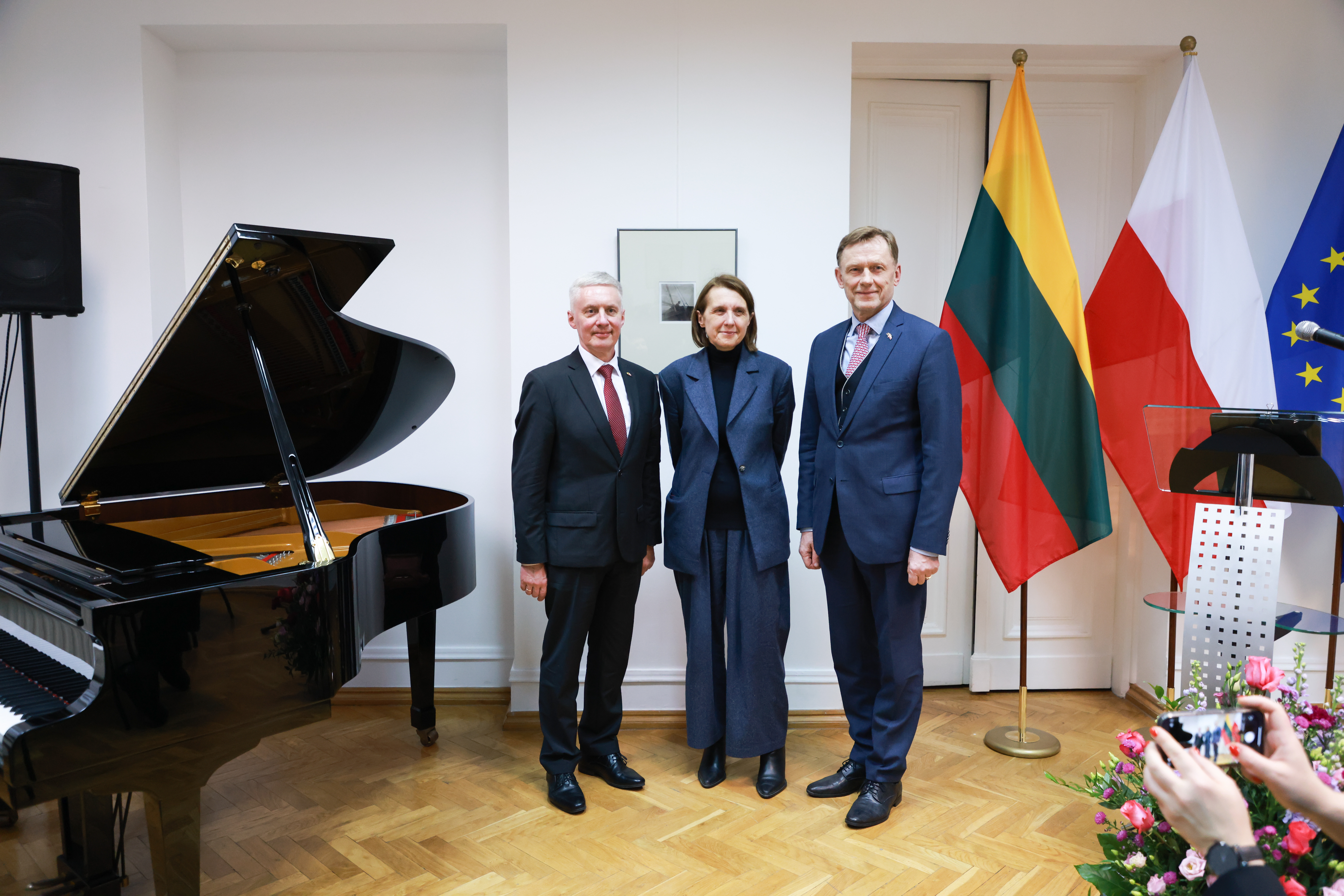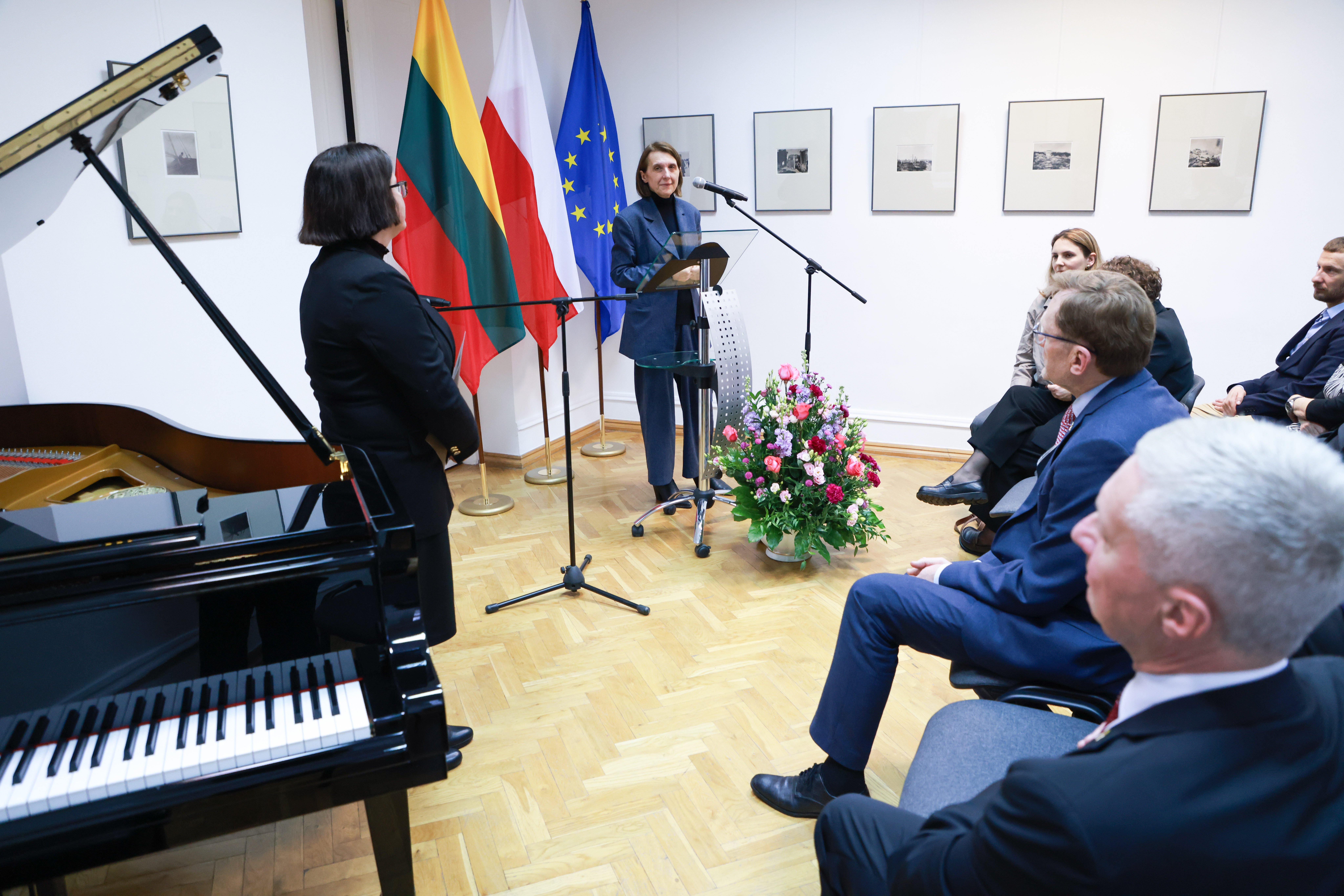 Ministrowie wzięli również udział w wernisażu wystawy, przygotowanej z okazji 150. rocznicy urodzin Mikalojusa Konstantinasa Čiurlionisa – wybitnego litewskiego malarza i kompozytora związanego z Warszawą. Wystawa „Wizjoner z 'Kodakiem': Fotografie Mikalojusa Konstantinasa Čiurlionisa” ukazuje 40 zdjęć wykonanych przez artystę latem 1905 roku podczas jego podróży po kaukaskim wybrzeżu Morza Czarnego. Jego fotografie stanowiły bowiem inspirację i punkt wyjścia dla wielu późniejszych dzieł. Artysta, blisko związany z polskim środowiskiem artystycznym, kształcił się w Warszawie i to właśnie tu, w wieku zaledwie 35 lat, zakończył swoje życie. Jego dorobek miał znaczący wpływ na wielu polskich twórców. Wśród instytucji zaangażowanych w Rok Čiurlionisa, znalazły się m.in.: Narodowe Centrum Kultury, Filharmonia Narodowa oraz Narodowe Forum Muzyki. Ekspozycja już w kwietniu trafi do Narodowego Zakładu im. Ossolińskich we Wrocławiu.