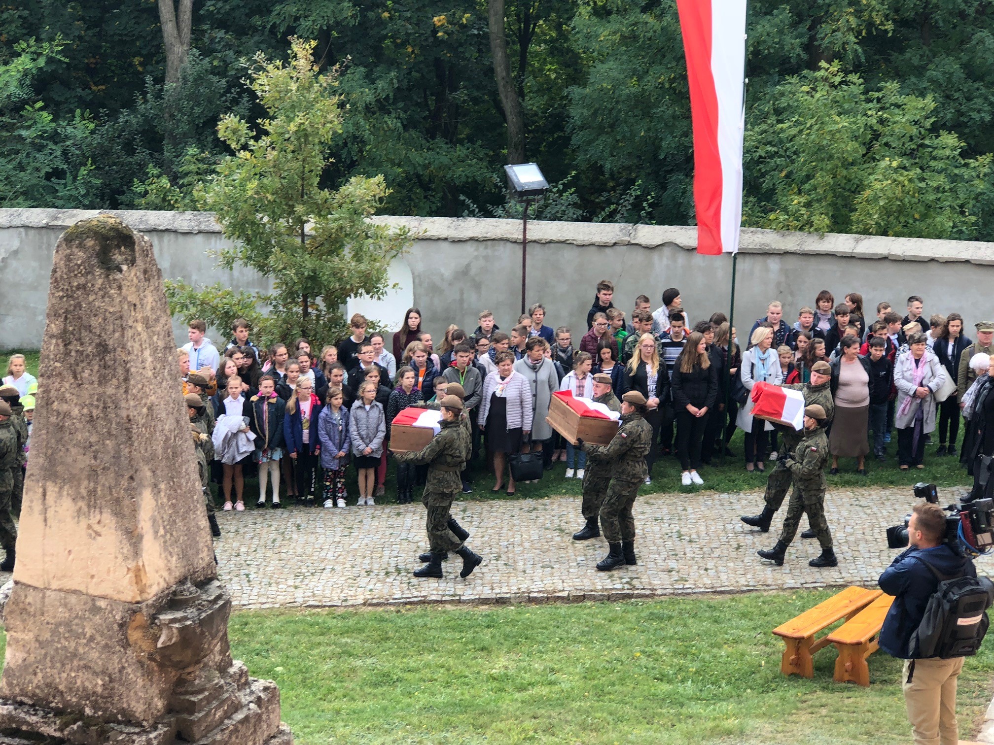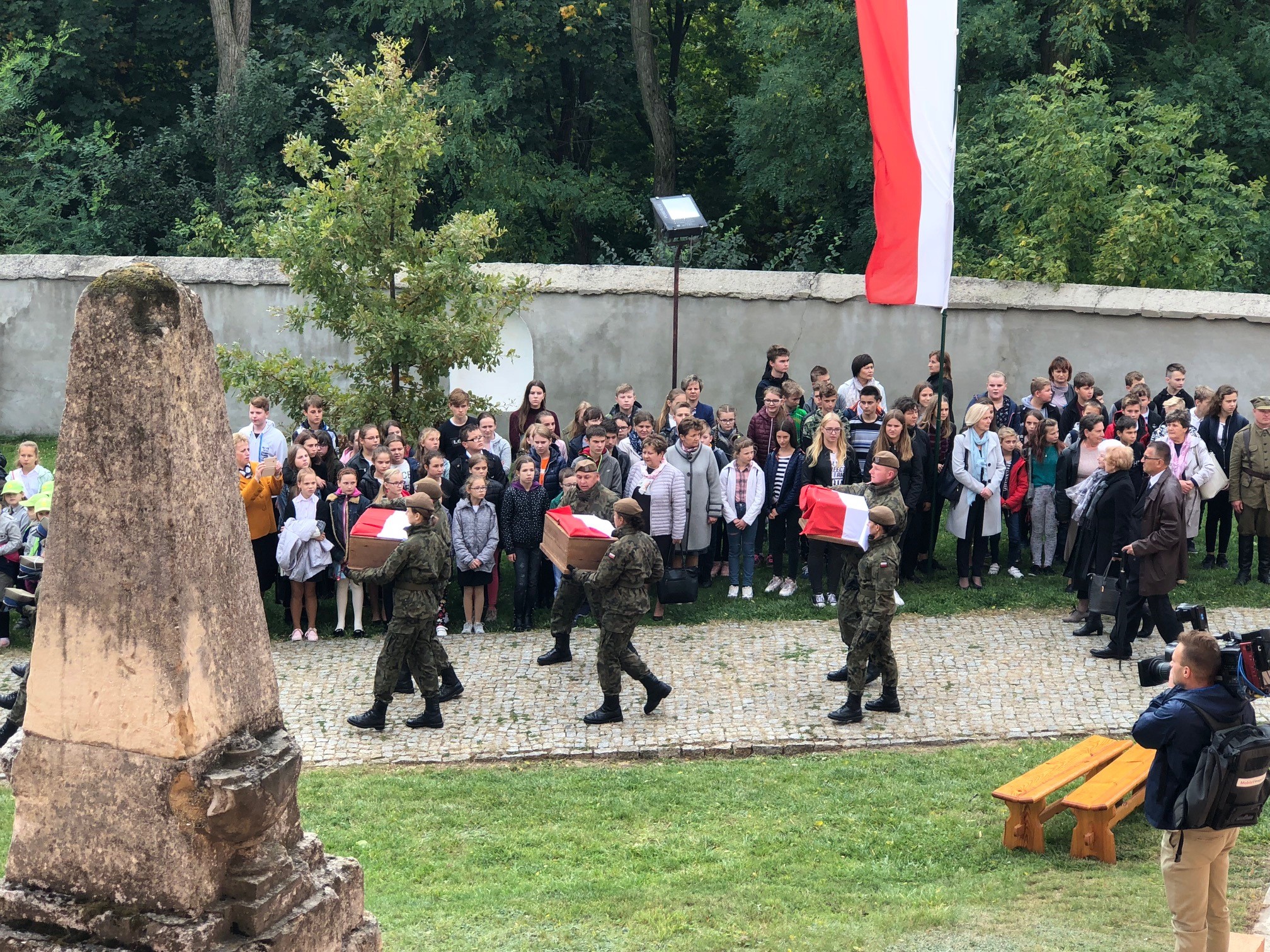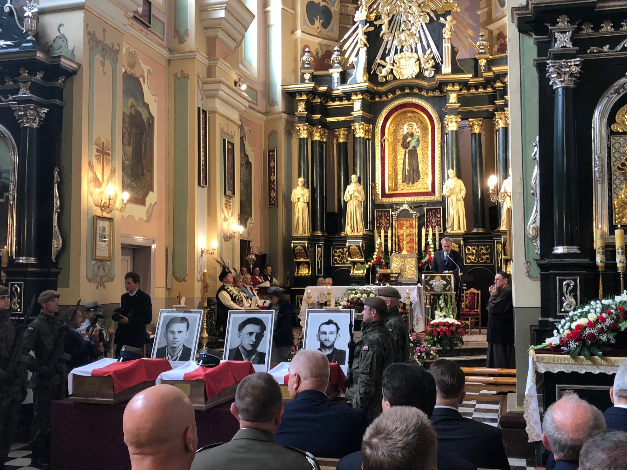 dzisiejsza uroczystość upamiętniająca śp. Józefa Pysia, Pawła Kalinowskiego i Mieczysława Szewczuka - żołnierzy II Inspektoratu Zamojskiego Armii Krajowej – to niezwykła manifestacja tego, co polskie – nie tego, co miało być naszym udziałem z sowieckiego nadania, ale właśnie tego, co prawdziwie polskie. Ci, których dziś w sposób symboliczny żegnamy, mieli być zapomniani, miało przyjść nowe, wspólne, socjalistyczne dobro. Niestety, wielu naszych rodaków z różnych pobudek za tym mirażem poszło. Ci jednak wytrwali do końca przy — niewybrednie kontestowanym dziś przez niektórych — haśle „Bóg Honor Ojczyzna”!