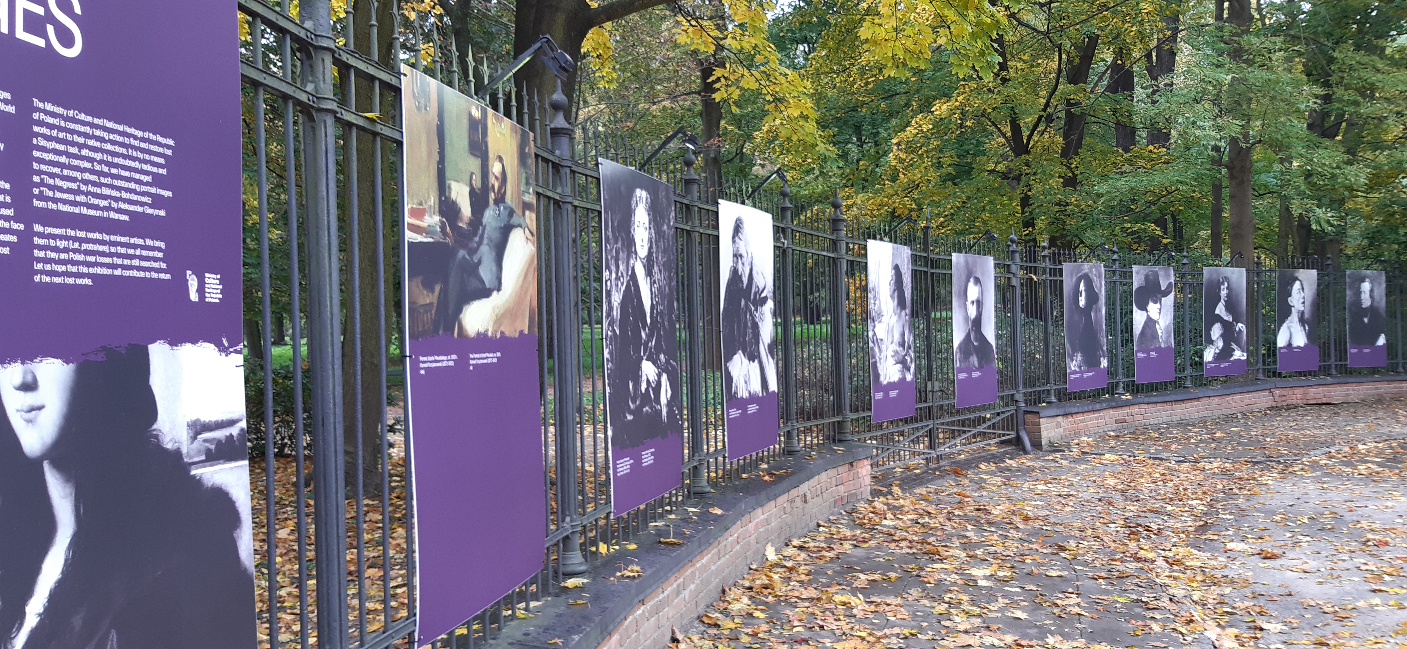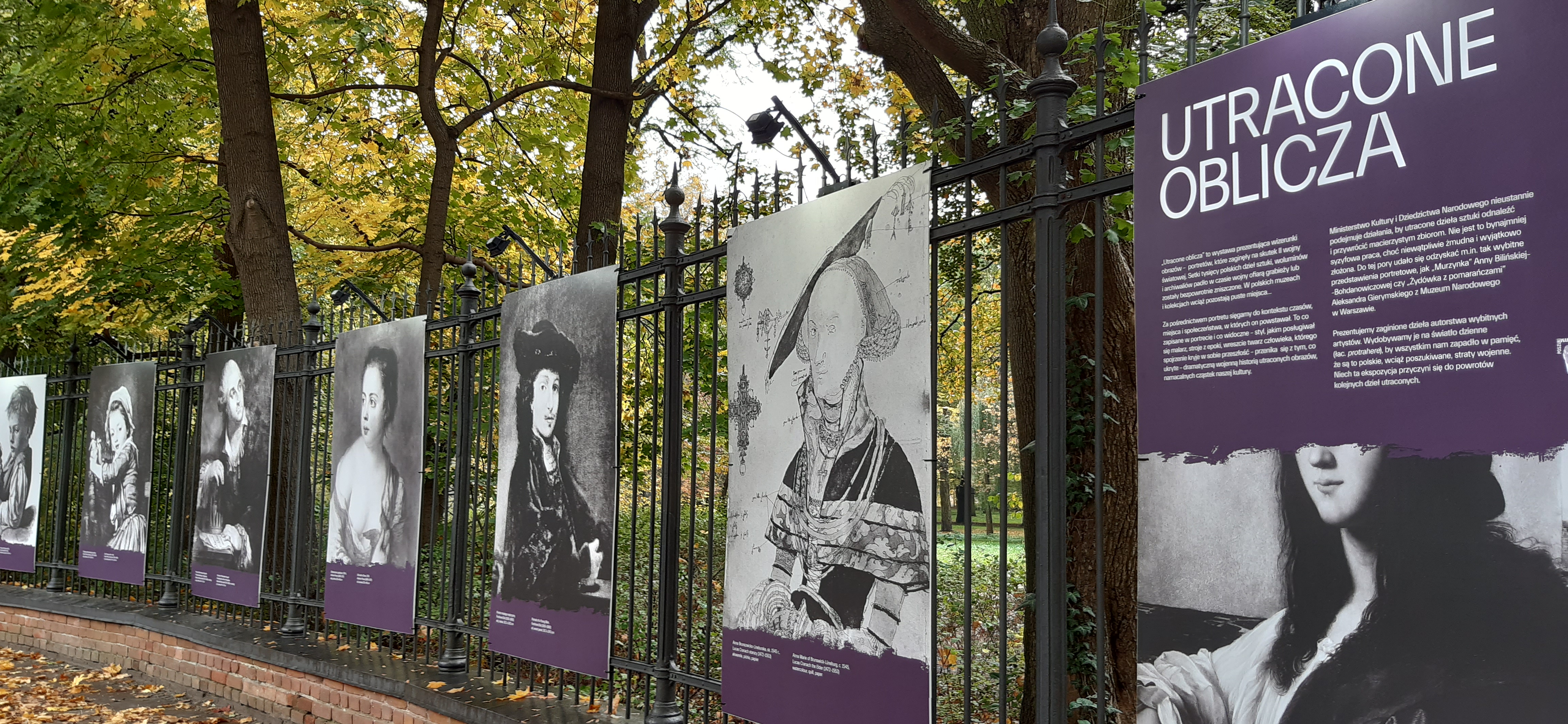 Wizerunki obrazów – portretów, które w skutek II wojny światowej zaginęły z polskich muzeów i kolekcji, od 23 października można oglądać na wystawie plenerowej „Utracone oblicza”. Przygotowana przez Ministerstwo Kultury i Dziedzictwa Narodowego ekspozycja będzie dostępna do 12 listopada na ogrodzeniu Łazienek Królewskich przy ul. Agrykola.