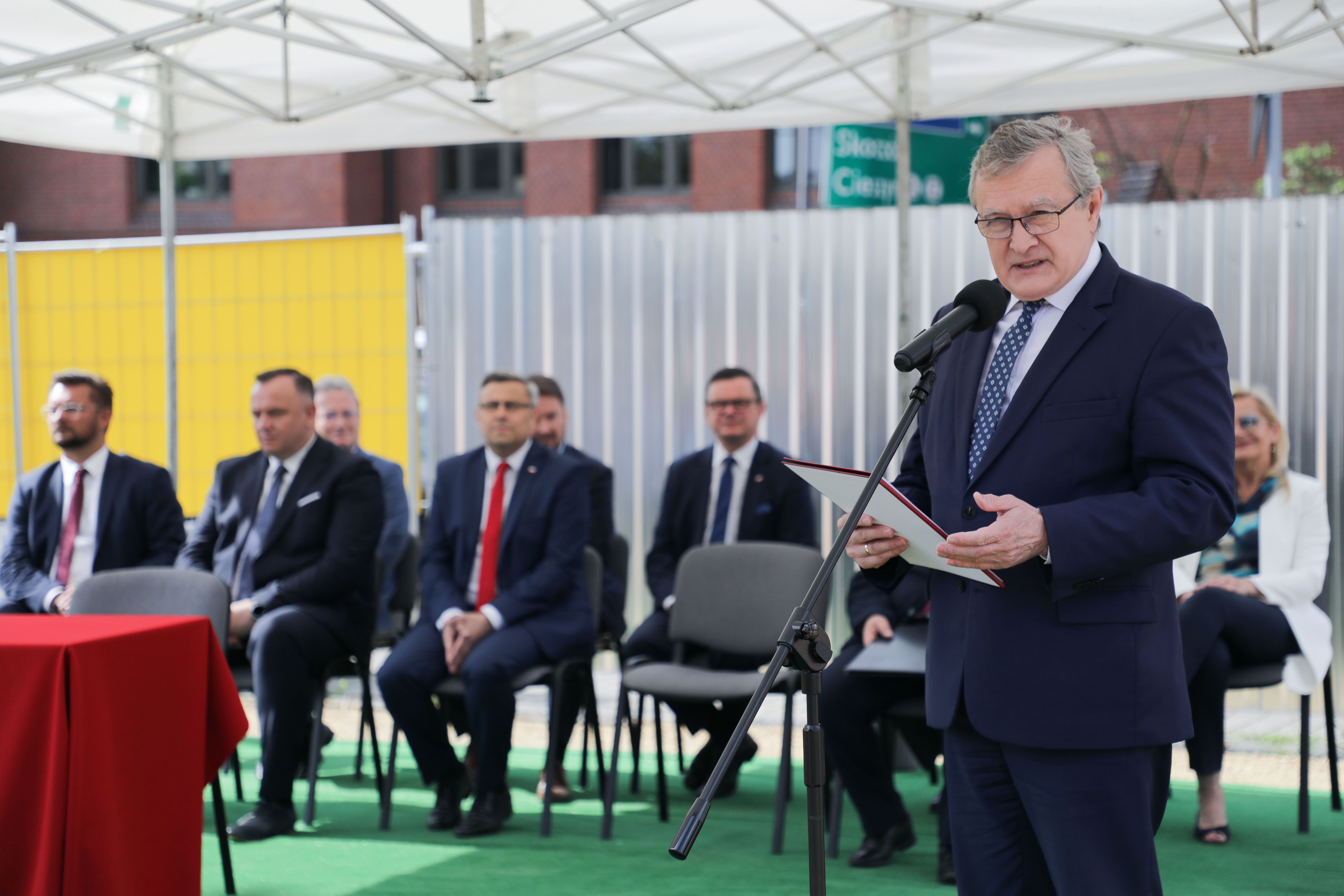 „Dziś inaugurujemy budowę Akademickiej Strefy Sztuki Scenicznej – kolejnego ważnego etapu rozwoju Akademii. Tworzenie optymalnych, ale i wciąż udoskonalanych, warunków do nauki i pracy niewątpliwie ma wpływ na wysoką jakość kształcenia, mierzoną liczbą nagród zdobywanych przez studentów. W samym roku akademickim 2021/2022 było ich 120. Taki wynik budzi szczery podziw i zarazem unaocznia ogrom pracy, która owocuje sukcesami tej miary” - powiedział wicepremier, minister kultury i dziedzictwa narodowego prof. Piotr Gliński podczas uroczystości wmurowania kamienia węgielnego pod budowę Akademickiej Strefy Sztuki Scenicznej Akademii Muzycznej w Katowicach.