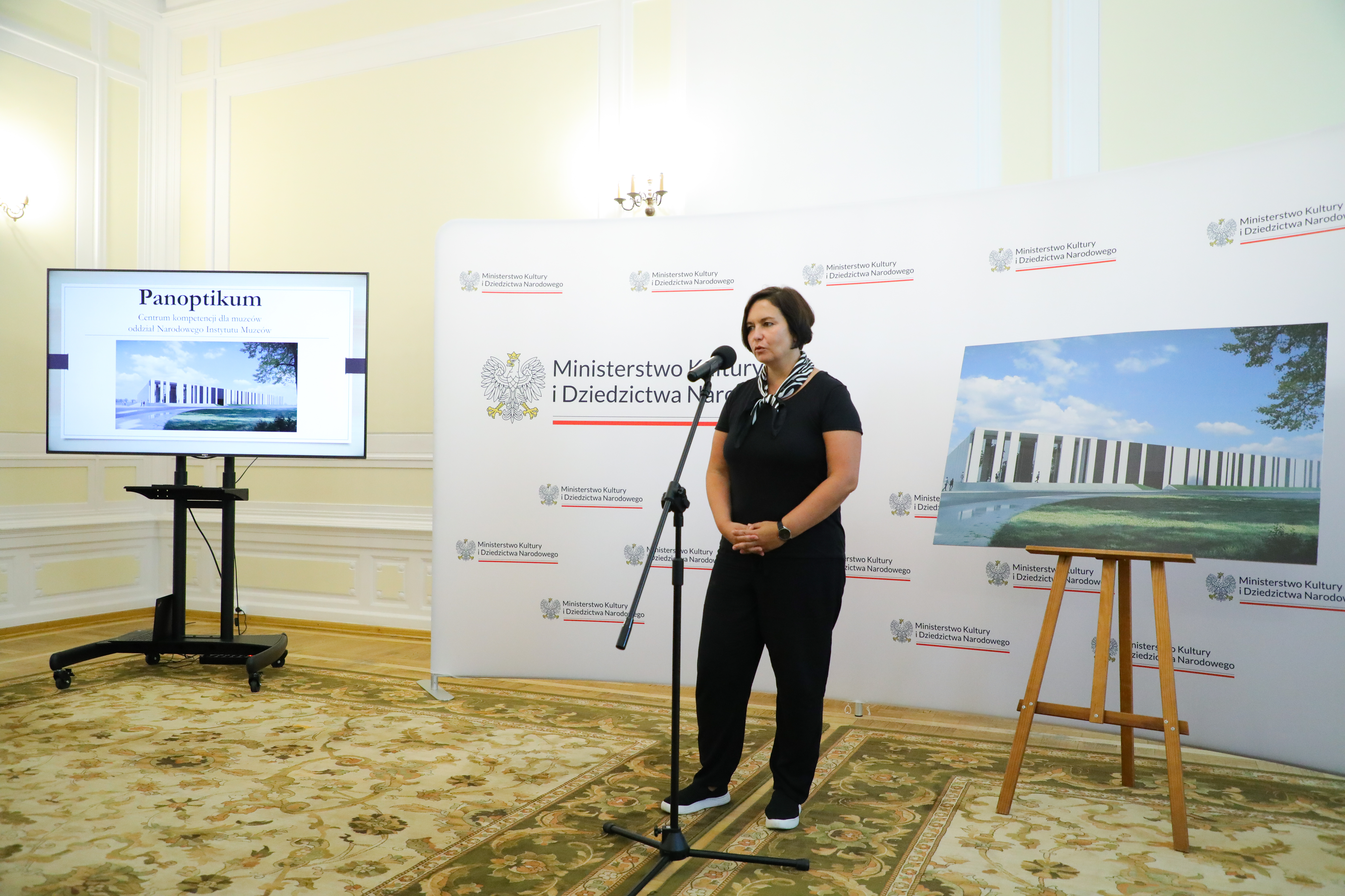 „Narodowy Instytut Muzeów we współpracy z MKiDN realizuje nową inwestycję - centrum kompetencji dla muzeów, która ma na celu wzmocnić infrastrukturę polskich muzeów. Centrum powstaje pod Warszawą, w Lesznowoli, na 18-hektarowej działce. Szacunkowa wartość inwestycji to ok. 200 mln zł” – powiedział dziś minister kultury i dziedzictwa narodowego prof. Piotr Gliński podczas konferencji prasowej, podczas której zaprezentowano projekt „Panoptikum – centrum kompetencji dla muzeów” – oddział Narodowego Instytutu Muzeów.