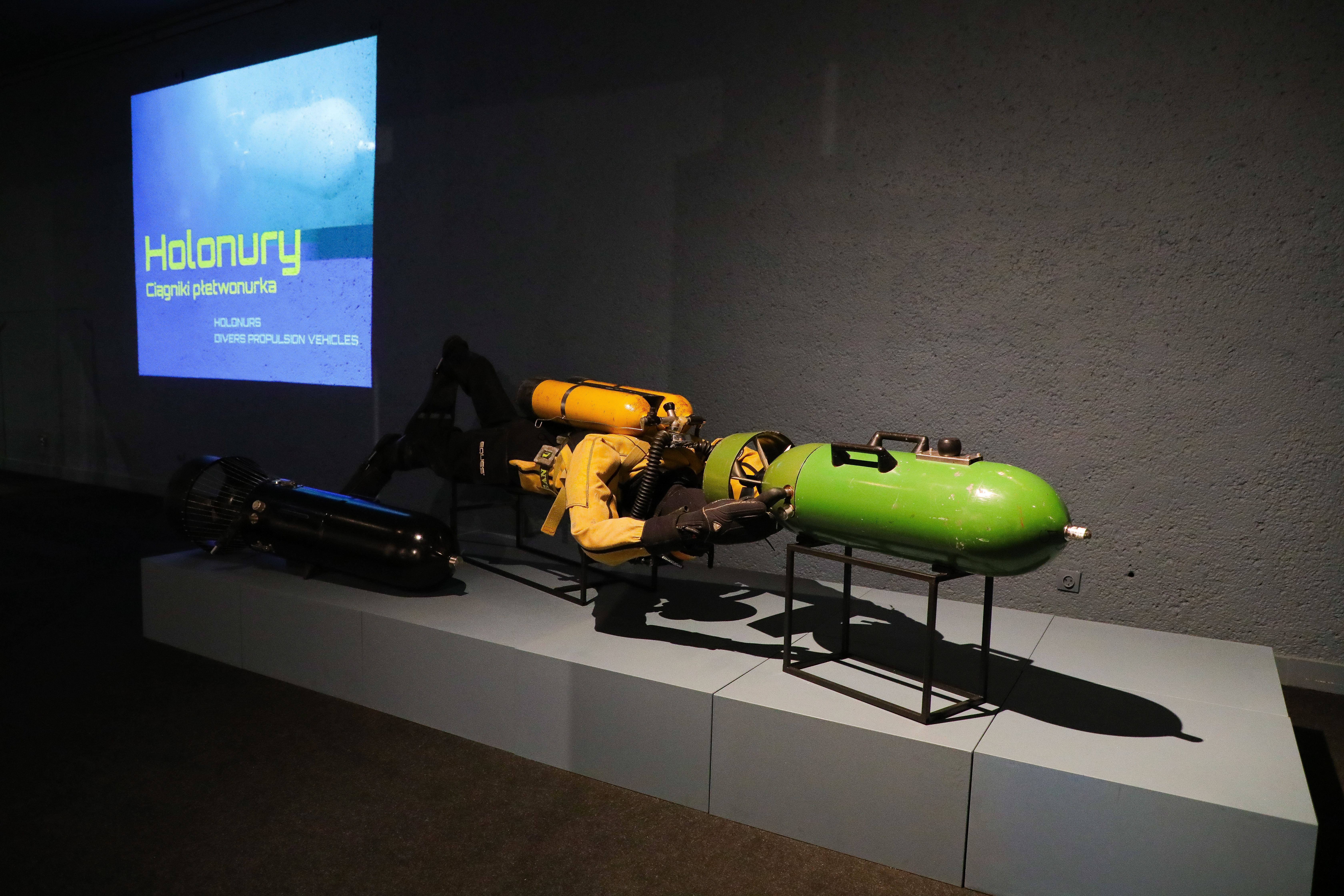 Wystawa prezentuje autorskie wynalazki polskich nurków i inżynierów służące do poruszania się pod wodą. Budowane nierzadko w zaciszu skromnych warsztatów, tzw. „metodą gospodarczą”, batyskafy, akwaplany i inne pojazdy podwodne rodzimej konstrukcji są jedynymi w swoim rodzaju wynalazkami. Podwodne pojazdy służące do wykonywania inspekcji, pomiarów, zdjęć i filmów narzędzi połowowych oraz dna morskiego, to obiekty mające istotny wpływ na rozwój polskiej myśli technicznej w okresie PRL-u. Ekspozycja przedstawia również przykłady podwodnych prac naukowych prowadzonych w latach 1954-1993 przy pomocy specjalistycznego sprzętu.