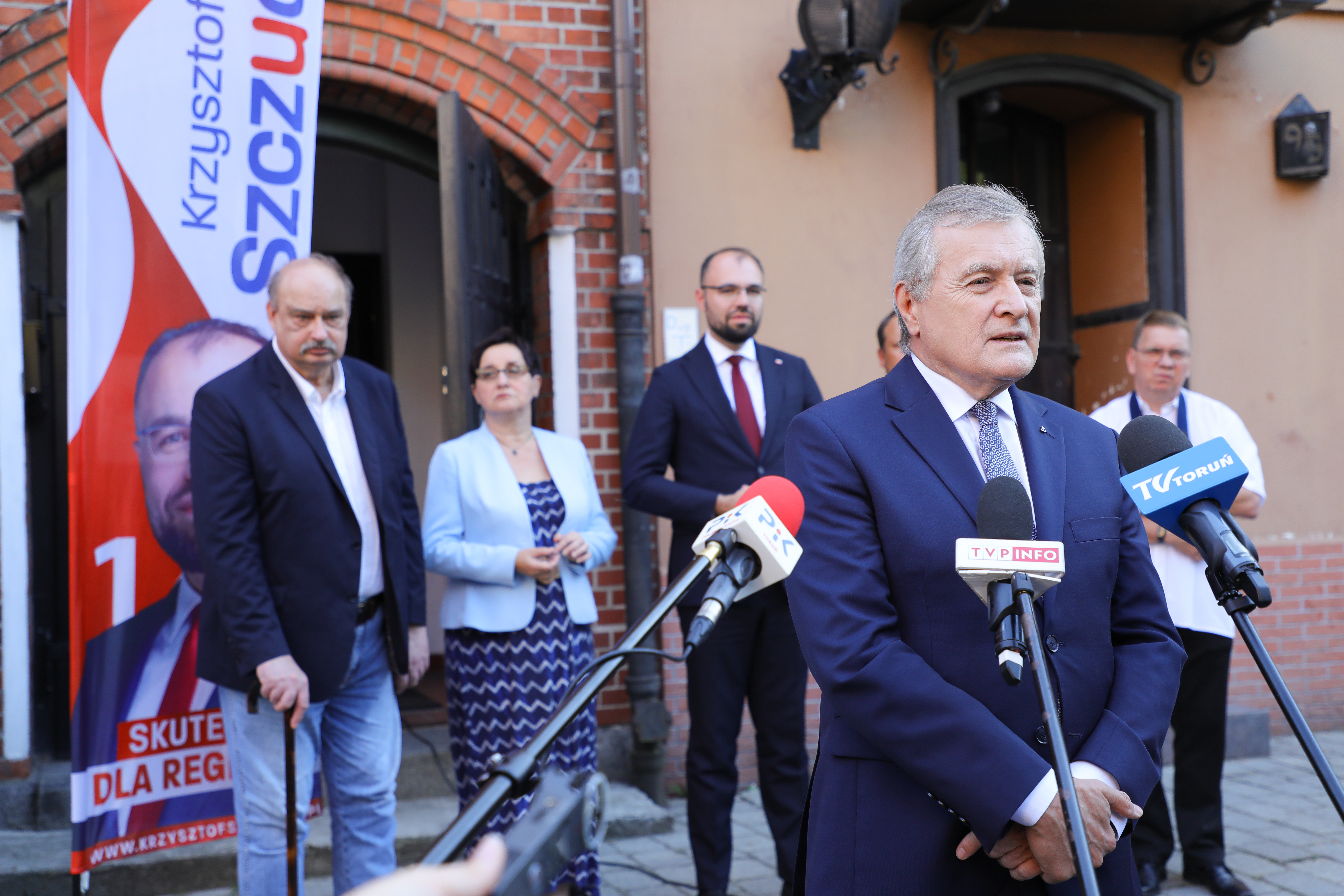 Spłacamy dzisiaj dług wdzięczności wobec gen. Elżbiety Zawackiej. To postać, która zasługuje na to, aby państwo polskie w większym zakresie wzięło pod opiekę jej dziedzictwo. Mam nadzieję, że już wkrótce doprowadzimy do tego, że powstanie instytucja kultury współprowadzona przez miasto Toruń, Fundację Generał Elżbiety Zawackiej i Ministerstwo Kultury - powiedział minister kultury i dziedzictwa narodowego prof. Piotr Gliński podczas konferencji prasowej przed siedzibą Fundacji Generał Elżbiety Zawackiej.