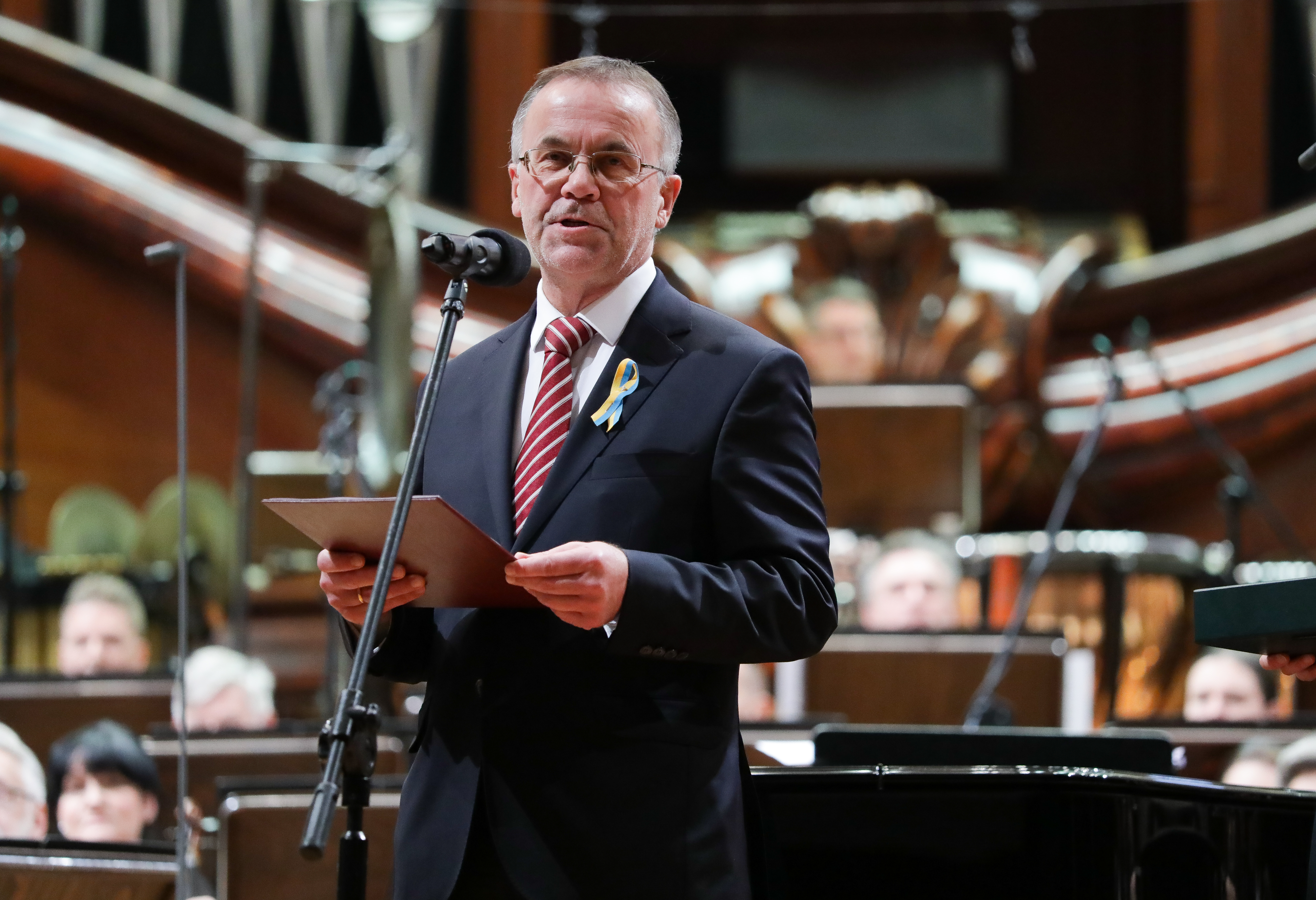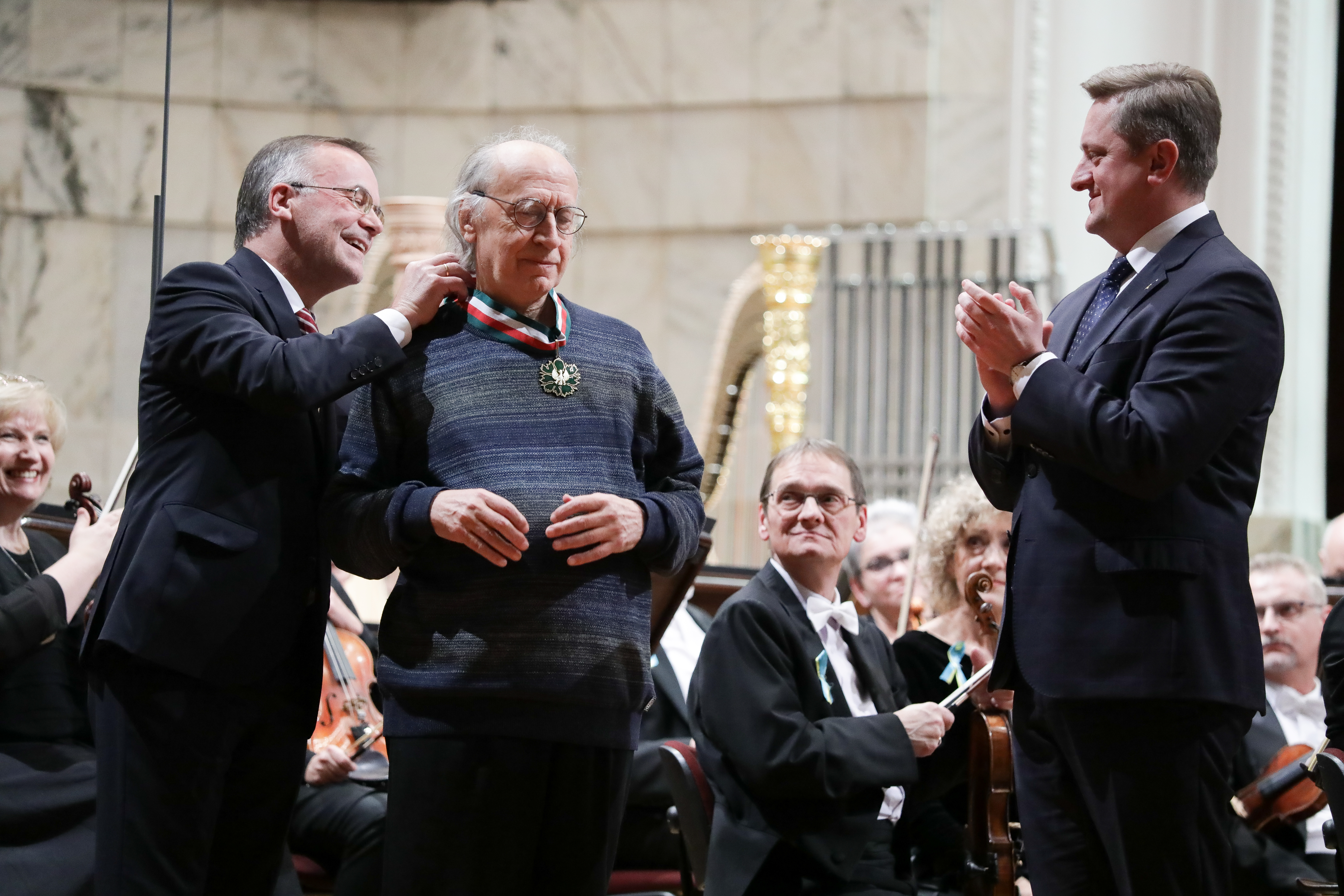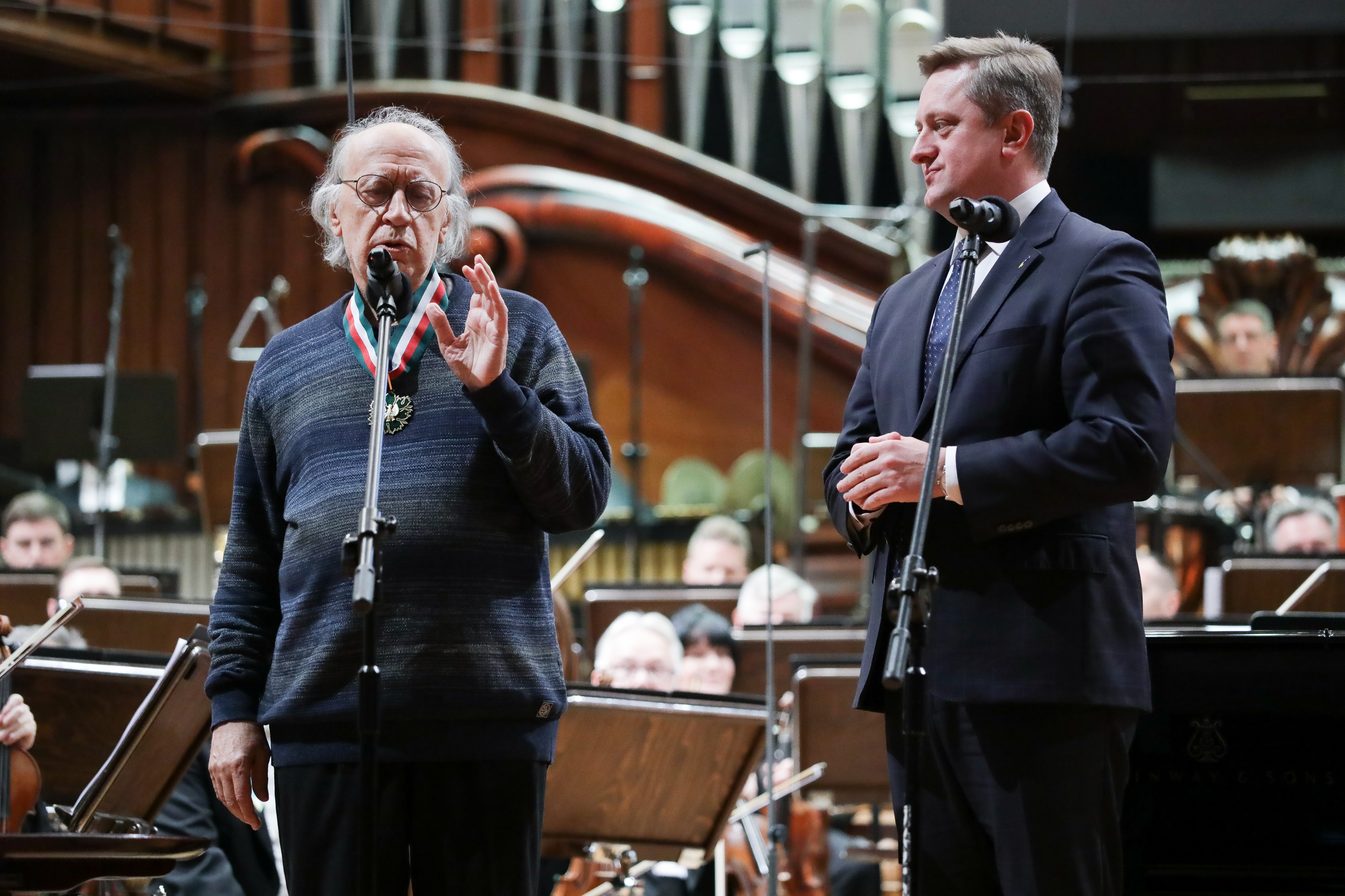 Myślę, że będę wyrazicielem uczuć nas wszystkich, jeśli powiem, że od kilku miesięcy podziwiamy dzielny naród, który dziś tutaj na estradzie Maestro Sylwestrow reprezentuje. To, że walczy o wartości, które są nam wszystkim bliskie. Solidaryzujemy się z państwem, które broni swojej wolności i niepodległości. Cieszę się, że Maestro Sylwestrow jest dzisiaj z nami i że osobiście mogę mu wręczyć najwyższe odznaczenie resortu kultury – zakończył Jarosław Sellin.