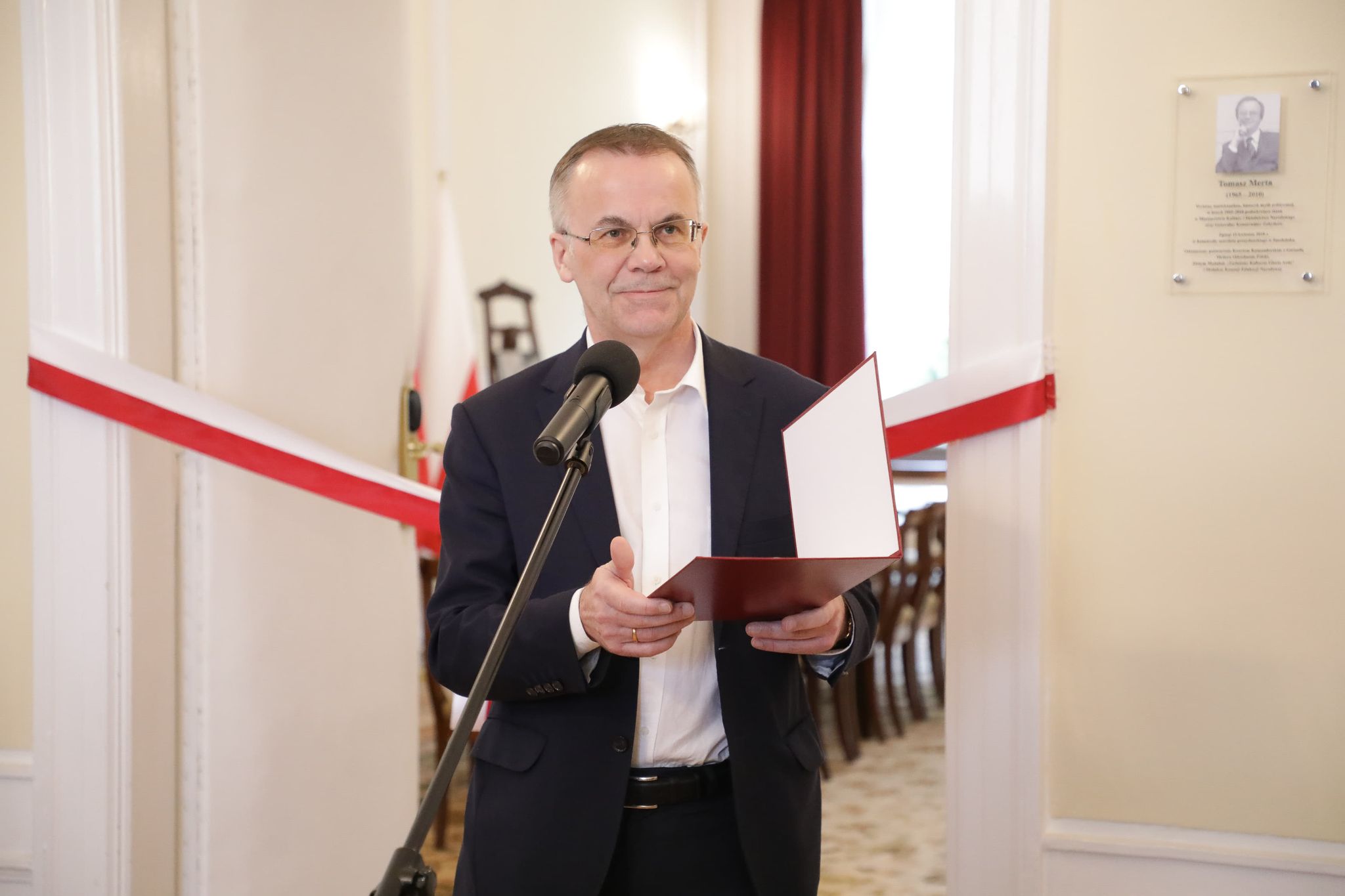 „Wspominamy śp. Tomasza Mertę jako polityka, dobrego człowieka i wybitnego intelektualistę. Ta wdzięczna pamięć dowodzi, jak polityka może być ważna i piękna, jeśli stoi za nią taki człowiek jak Tomasz Merta” – powiedział wicepremier, minister kultury i dziedzictwa narodowego prof. Piotr Gliński podczas uroczystości nadania imienia śp. Tomasza Merty sali konferencyjnej w MKiDN.