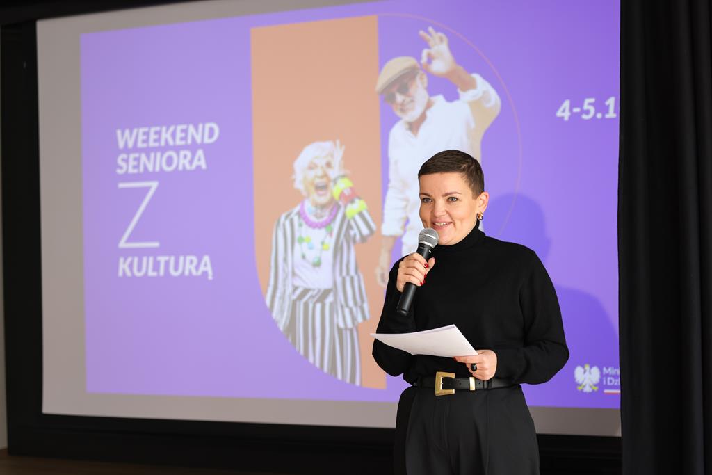 Konferencja zapowiadająca tegoroczną edycję akcji „Weekend Seniora z Kulturą” odbyła się w Centrum Aktywności Międzypokoleniowej w Warszawie. Wzięli w niej udział Marta Cienkowska, ministra kultury i dziedzictwa narodowego, Beata Jaroszyńska, wiceprzewodnicząca Warszawskiej Rady Seniorów, Joanna Dolińska-Dobek, dyrektorka Centrum Aktywności Międzypokoleniowej oraz seniorzy korzystający z oferty Centrum.