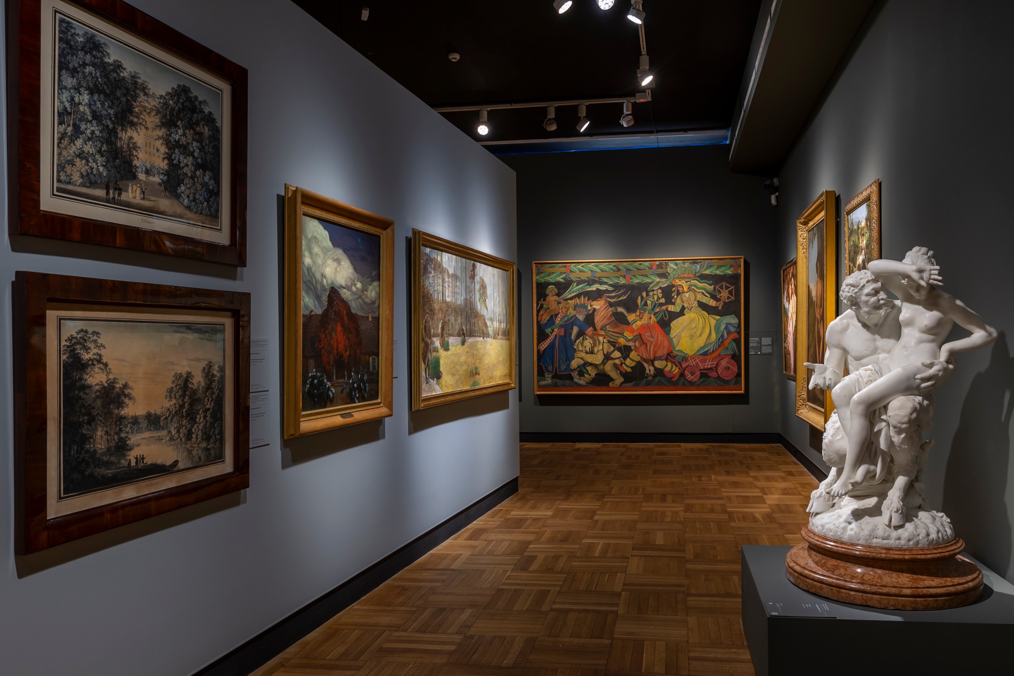 Na ekspozycji można podziwiać dzieła sztuki od wczesnego renesansu do współczesności: obrazy, rzeźby, rysunki i ryciny, fotografie, a także znakomite przykłady rzemiosła artystycznego (tapiserie, ceramikę, kostiumy). Zaprezentowane zostały przede wszystkim obiekty ze zbiorów Muzeum Narodowego, ale także obrazy z innych kolekcji polskich (m.in. z Muzeum Łazienek Królewskich, Zamku Królewskiego na Wawelu, Muzeum Narodowego w Krakowie, Muzeum Narodowego w Poznaniu) oraz muzeów zagranicznych (m.in. Musée du Louvre, Musée d'Orsay w Paryżu, Kunsthistorisches Museum Wien).