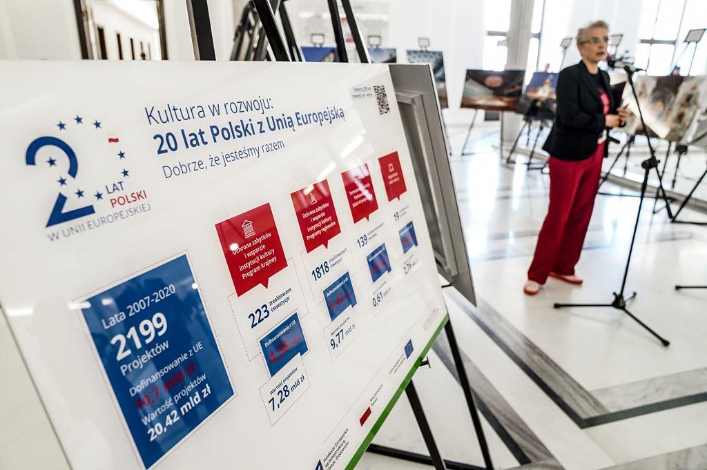 Członkostwo Polski w Unii Europejskiej otworzyło przed sektorem kultury wiele nowych możliwości.. Teraz, po 20-latach członkostwa jesteśmy w stanie w sposób bardzo konkretny wykazać korzyści, jakie polska kultura osiągnęła, m.in. z powodu większego otwarcia się na świat, rozwoju ruchu turystycznego, tworzenia miejsc integracji społecznej czy podniesienia atrakcyjności turystycznej zabytków – podkreśliła wiceminister Joanna Scheuring-Wielgus, otwierając wystawę.
