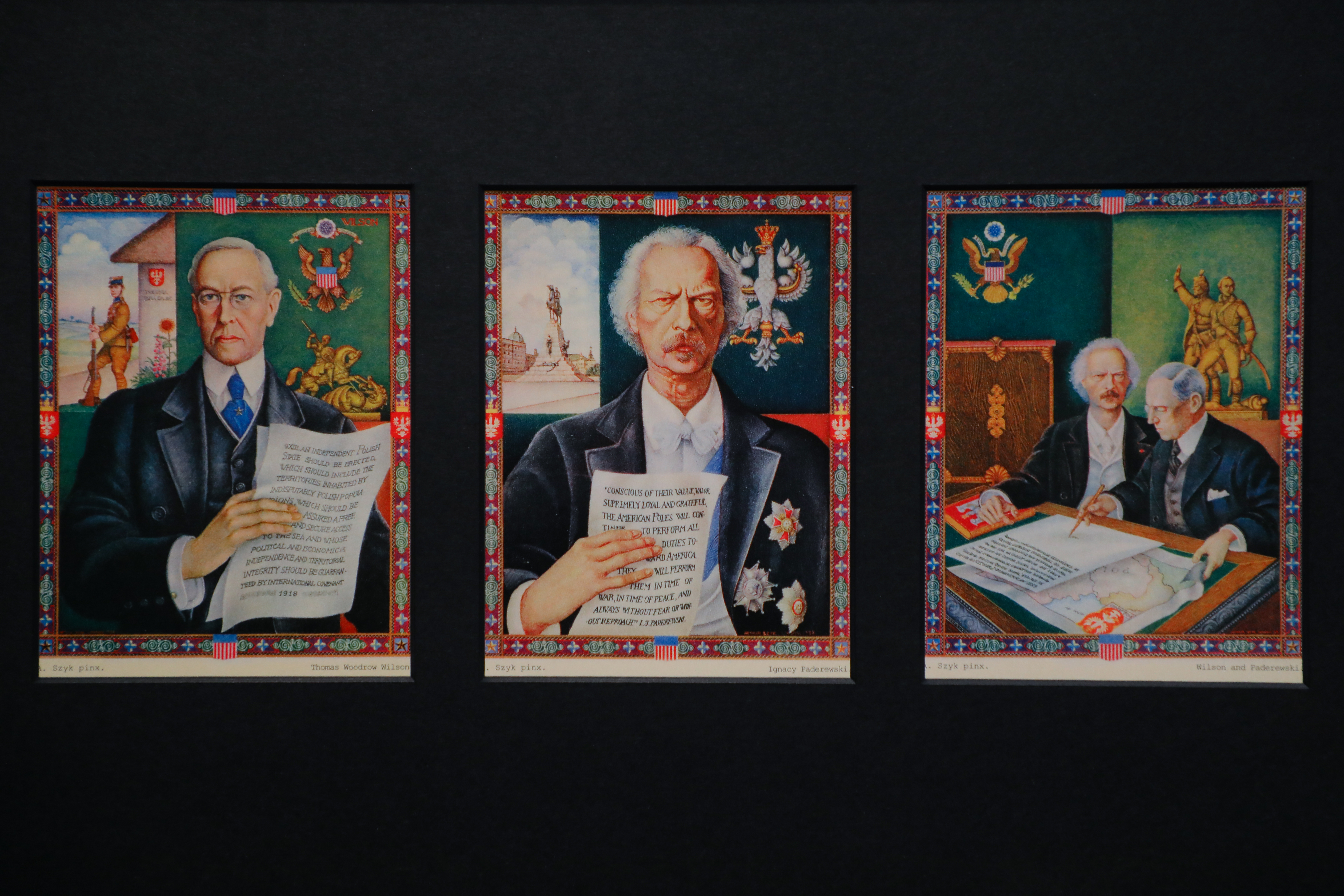Także dzięki Arturowi Szykowi i jego twórczości obroniliśmy się przed bolszewikami. Na wystawie odnajdujemy plakaty jego autorstwa wzywające do wstępowania do armii czy zachęcające do wykupywania pożyczki odrodzenia. Później wyjechał do Francji, gdzie się uczył, ale wrócił, gdyż dostał zamówienie na prace przy ilustracji „Statutu kaliskiego”. Niebywała jest technika, którą zastosował. Ona bierze swoje początki z iluminacji ksiąg średniowiecznych. W czasie II wojny światowej schronił się w Ameryce, gdzie projektował plakaty propagandowe, wspierające Amerykę w wojnie przeciwko niemieckim czy japońskim faszystom. Był także zaangażowany w powstanie państwa Izrael – wskazał prof. Piotr Gliński.