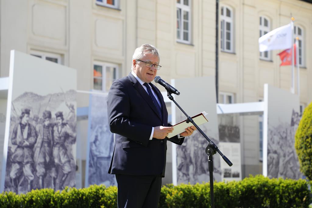Minister kultury zaznaczył, że powstańcy walczyli pod hasłem: „Równość–Wolność–Niepodległość” i trójdzielnym herbem, na którym obok Polskiego Orła i Litewskiej Pogoni znajdował się Michał Archanioł - symbolizujący Ruś, trzeci polityczny naród dawnej Rzeczypospolitej.