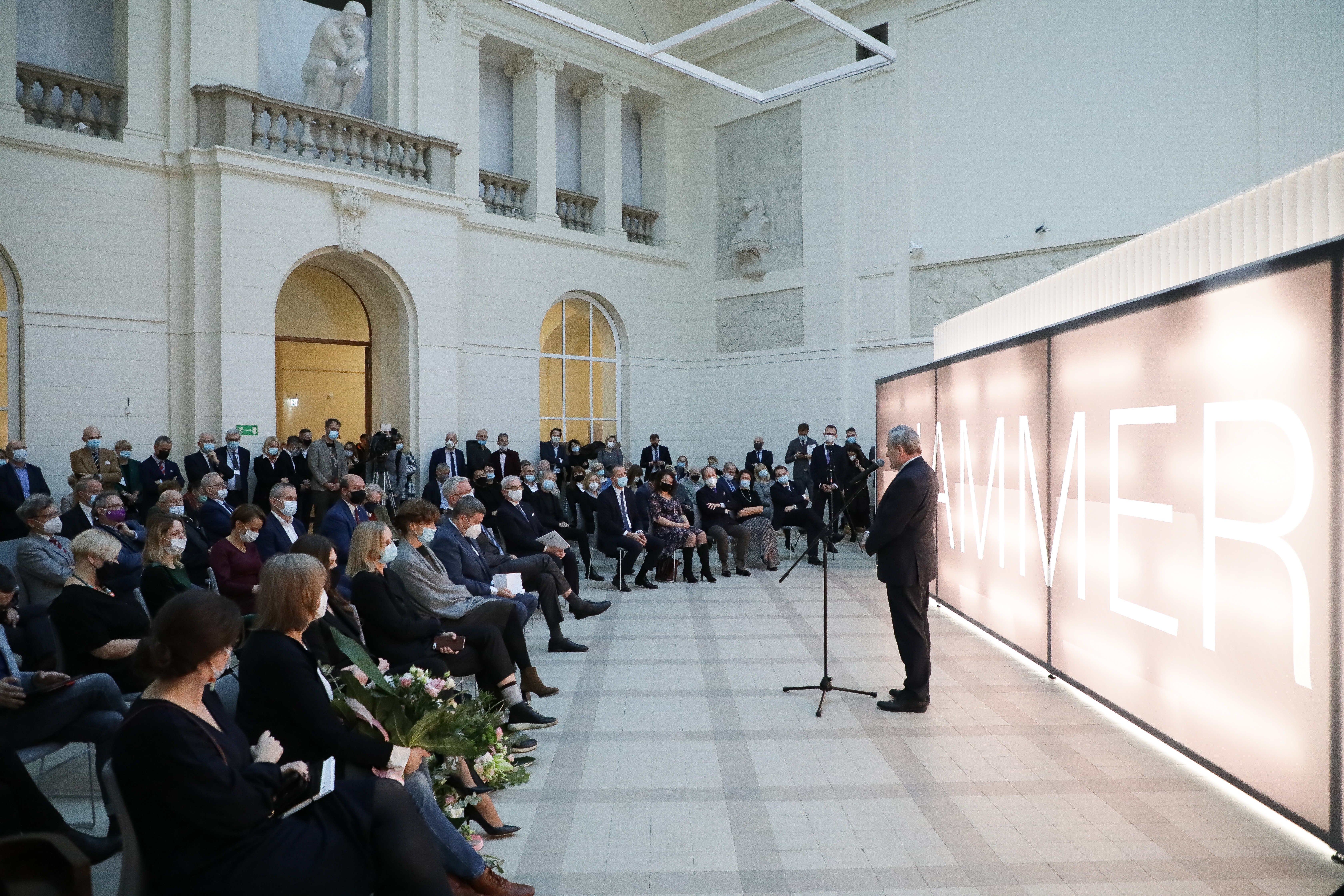 „Polskie muzea, zwłaszcza w ostatnim czasie, działają bardzo intensywnie, bardzo profesjonalnie i znacznie bardziej odważnie. Nie wahamy się, jeśli chodzi o wsparcie różnego typu tak wielkich wyzwań jak wystawa Vilhelma Hammershoia” – powiedział minister kultury i dziedzictwa narodowego prof. Piotr Gliński podczas wernisażu wystawy „Vilhelm Hammershøi. Światło i cisza” w Muzeum Narodowym w Poznaniu. Wcześniej wicepremier obejrzał prezentację Depozytu Funduszu Obrony Narodowej w Muzeum Sztuk Użytkowych – oddziale Muzeum Narodowego w Poznaniu oraz kolekcję obrazów Jacka Malczewskiego i Sztuki Młodej Polski w Gmachu Głównym muzeum.