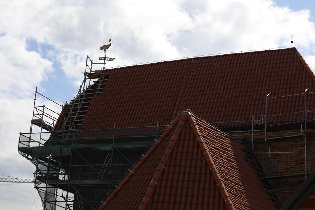 Wiatrowskaz w kształcie żurawia powrócił na modernizowany zabytkowy dźwig portowy w Gdańsku