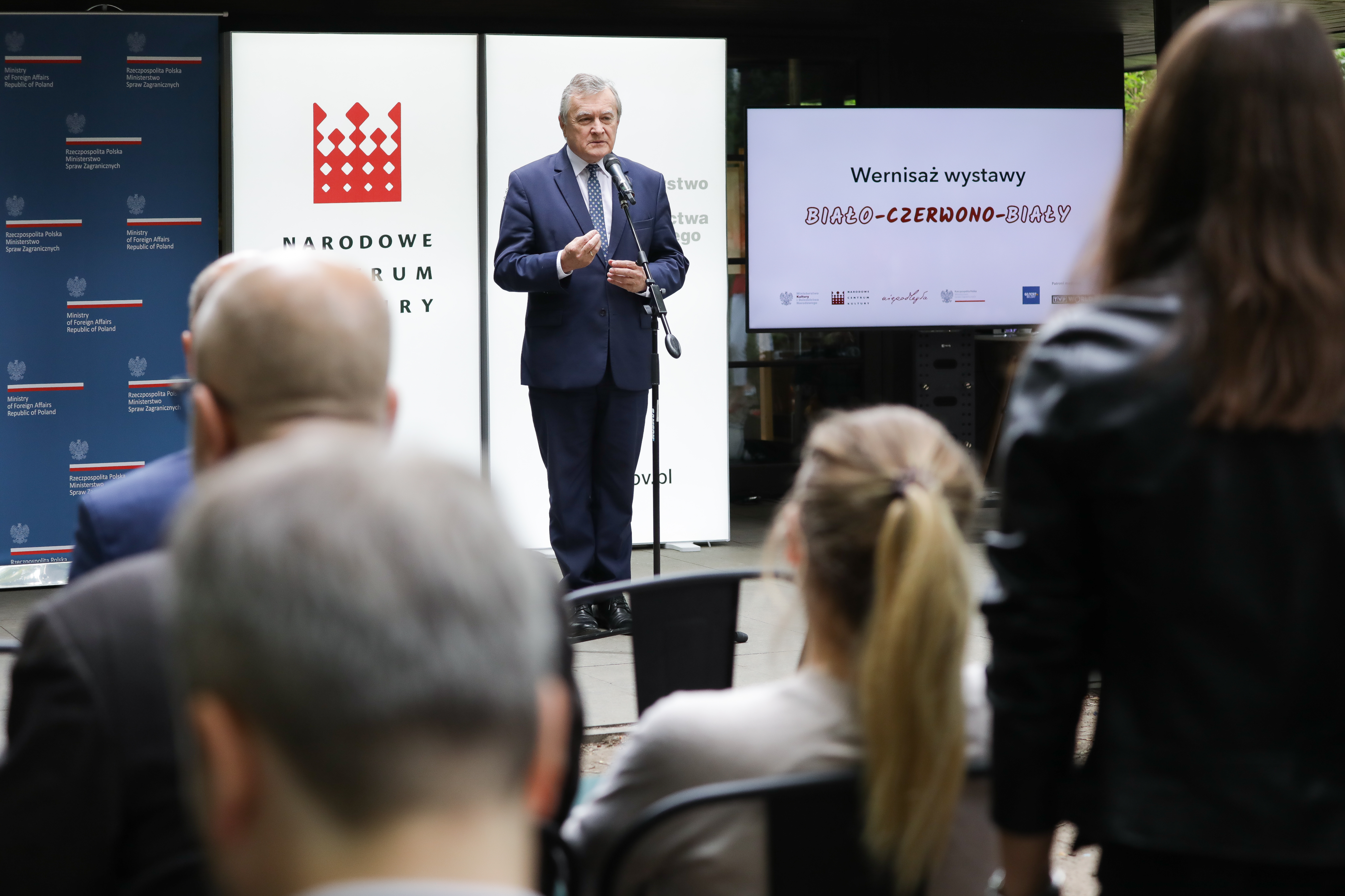 Wicepremier Gliński: „Nie możemy się godzić na zło” – wernisaż wystawy „Biało-czerwono-biały” w Łazienkach Królewskich
