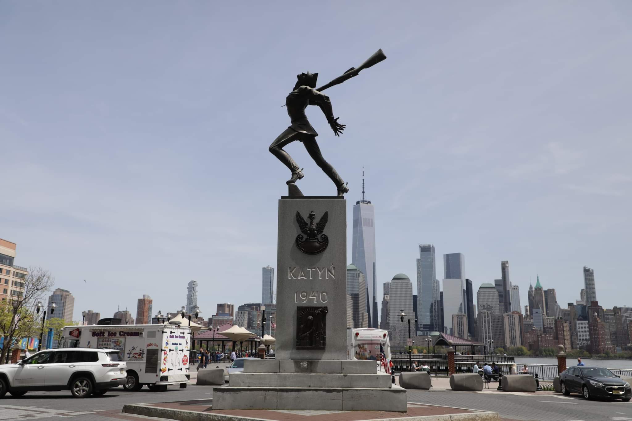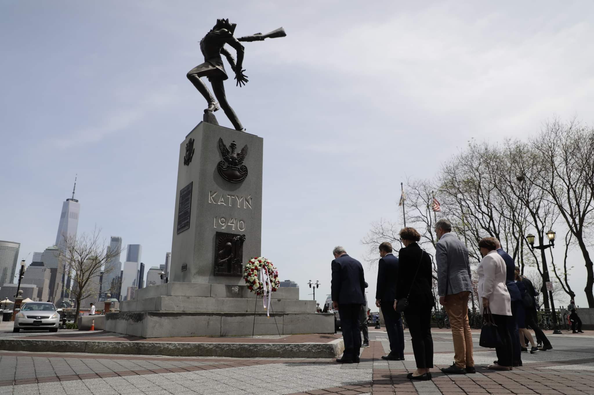 Wcześniej wicepremier Piotr Gliński złożył kwiaty pod Pomnikiem Katyńskim w New Jersey City. Pomnik znajduje się na Exchange Place, w centralnym punkcie Jersey City, przy ujściu rzeki Hudson, na tle nowojorskiego Manhattanu. Jest pierwszym pomnikiem katyńskim w Stanach Zjednoczonych. Powstał na przełomie lat 80-tych i 90-tych XX w. z inicjatywy Stanisława Paszula (żołnierza AK, byłego więźnia sowieckich łagrów na Syberii) oraz Józefa Płońskiego (weterana armii amerykańskiej) którzy powołali Komitet Budowy Pomnika Katyńskiego. Realizacja projektu była możliwa dzięki datkom zebranym przez polonijne organizacje i parafie, jak również dzięki prywatnym fundatorom. Autorem pomnika był Andrzej Pityński, polski rzeźbiarz – monumentalista.