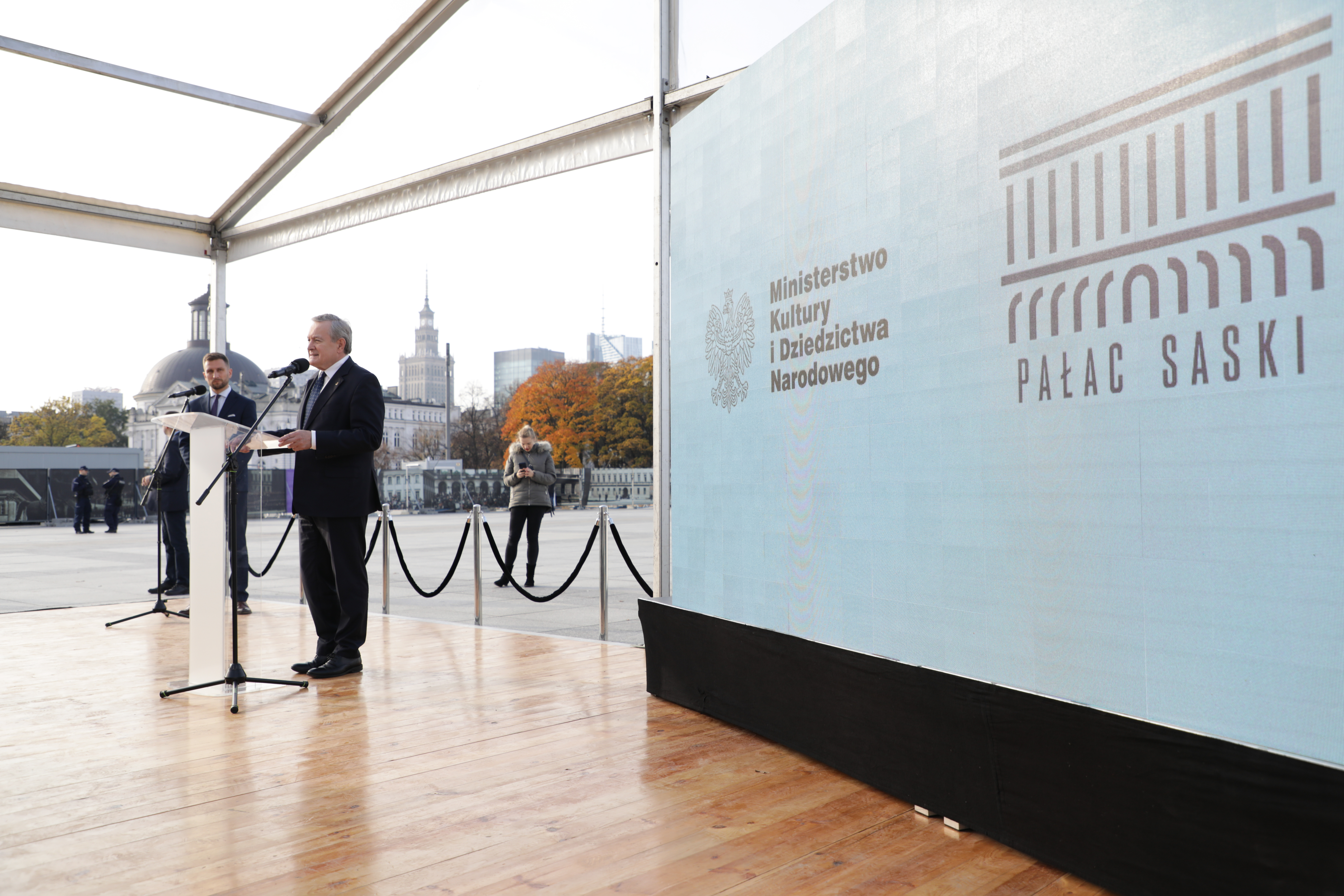 Wicepremier przekazał, że w odbudowanym Pałacu Saskim znajdą się filie Muzeum Historii Polski oraz Zachęty – Narodowej Galerii Sztuki. Wskazał, że będzie to miejsce otwarte dla organizacji pozarządowych, warszawiaków i wszystkich przyjezdnych.