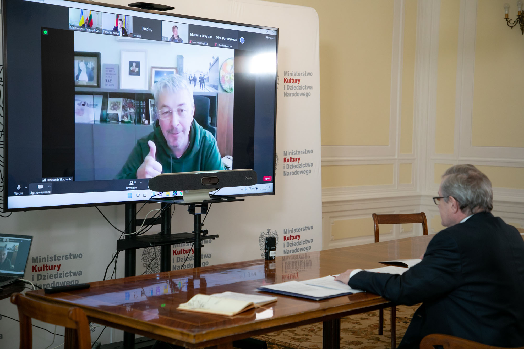 Wicepremier Piotr Gliński wziął udział w zdalnym spotkaniu Trójkąta Lubelskiego w dziedzinie kultury. Spotkanie ministrów kultury Polski, Litwy i Ukrainy było planowane 25 lutego w Kijowie, jednak z powodu rosyjskiej agresji na Ukrainę musiało zostać odwołane. W poniedziałek minister kultury i polityki informacyjnej Ukrainy Ołeksandr Tkaczenko, minister kultury Litwy Simonas Kairys oraz polski minister kultury i dziedzictwa narodowego prof. Piotr Gliński rozmawiali za pośrednictwem jednej z platform komunikacyjnych i w sposób symboliczny podpisali deklarację współpracy w dziedzinie kultury i dziedzictwa historycznego.