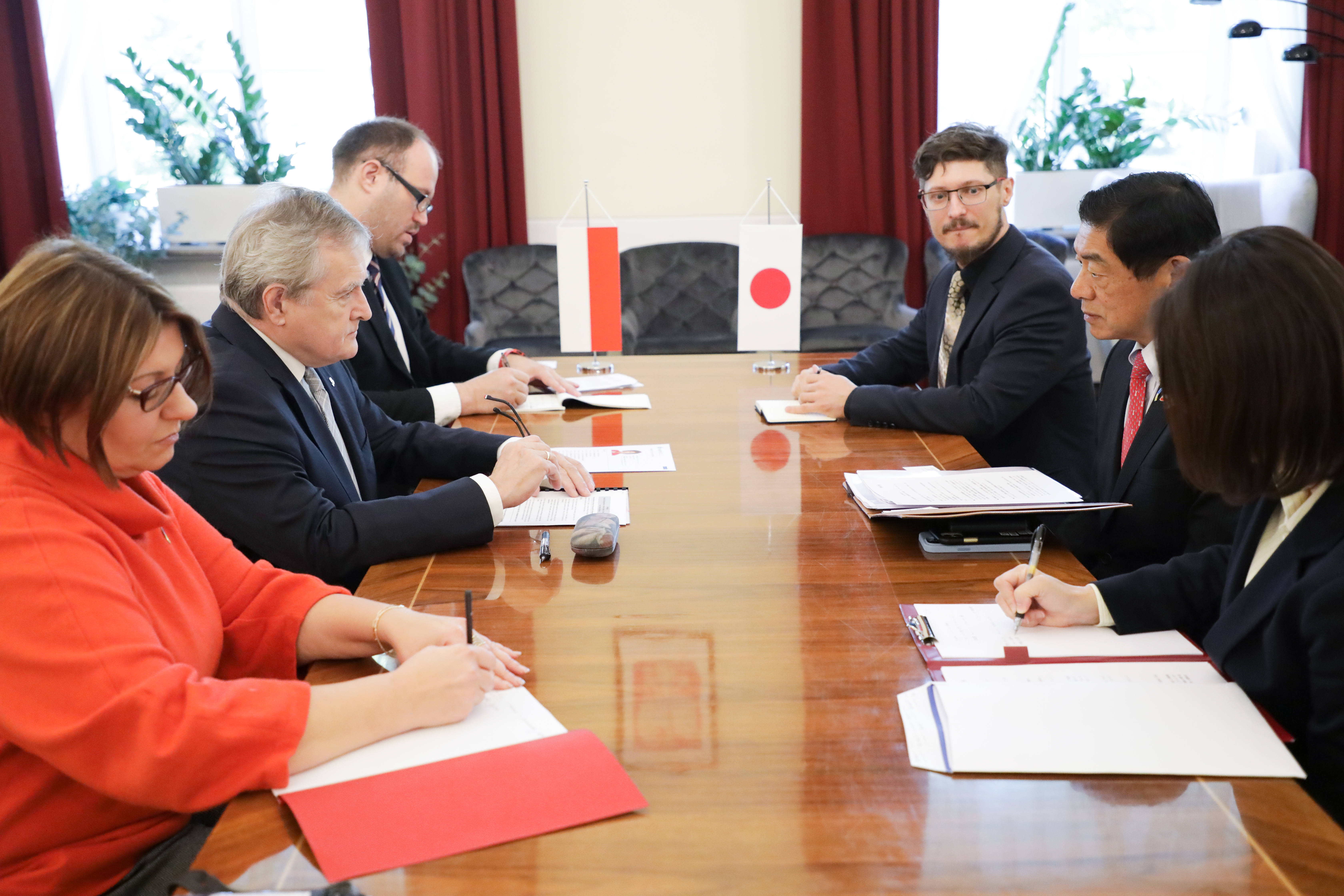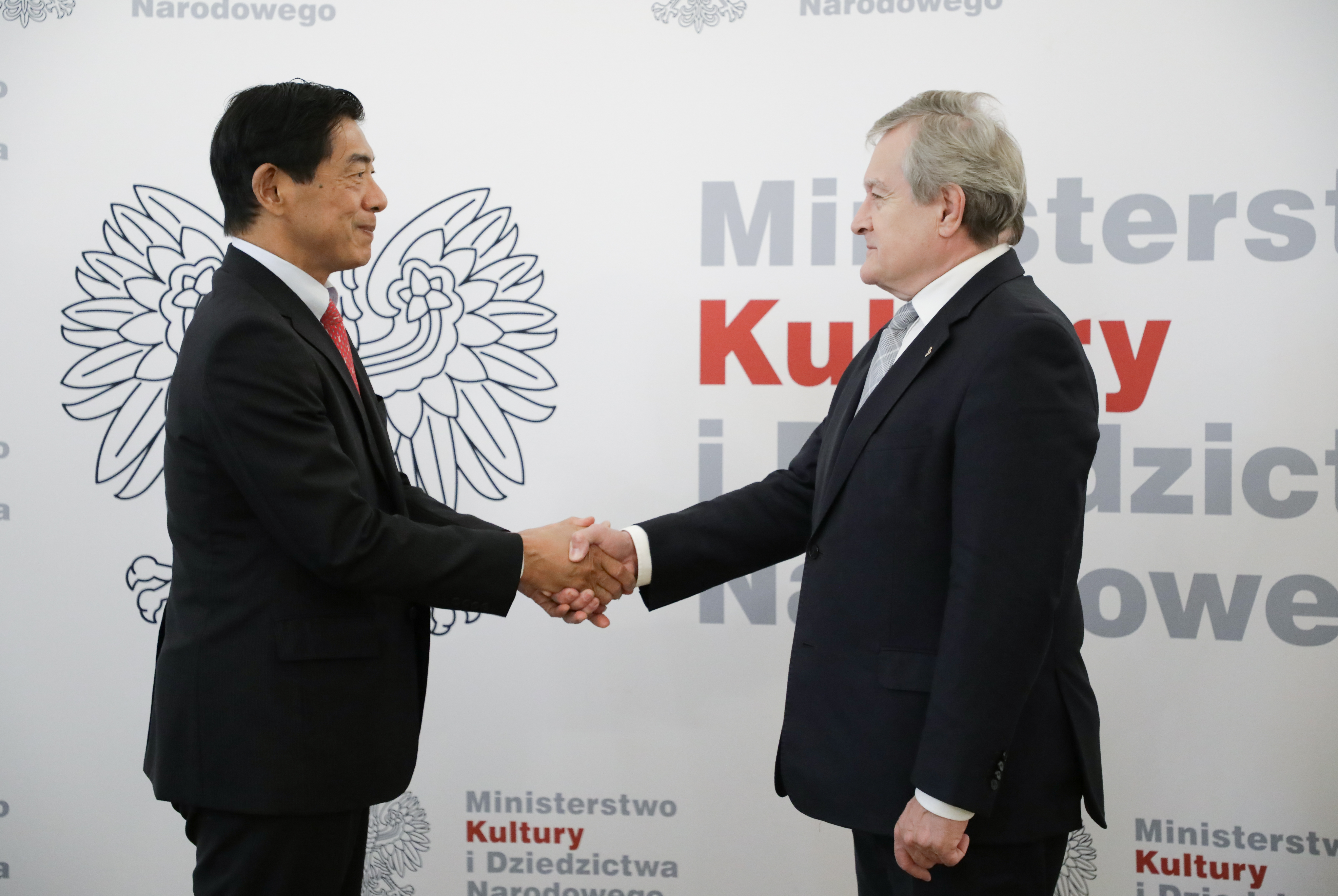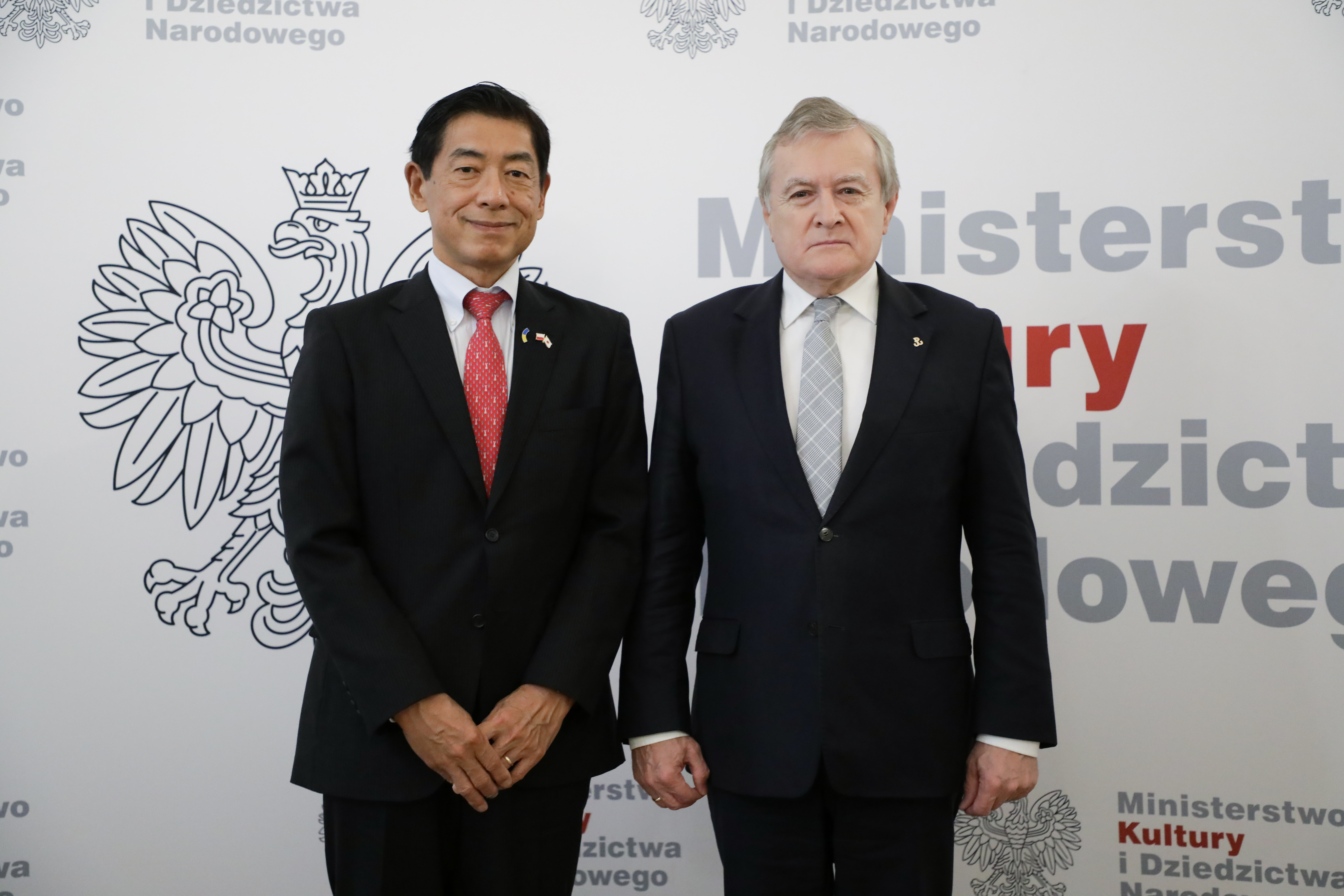 Wiceprezes Rady Ministrów, minister kultury i dziedzictwa narodowego prof. Piotr Gliński przyjął w środę ambasadora Japonii w Polsce, pana Miyajima Akio. Tematem spotkania były m.in. wyzwania ekonomiczne i polityczne spowodowane agresją Rosji na Ukrainę i pomoc dla objętej wojną Ukrainy, a także projekty dotyczące współpracy w obszarze kultury i historii pomiędzy obydwoma krajami.