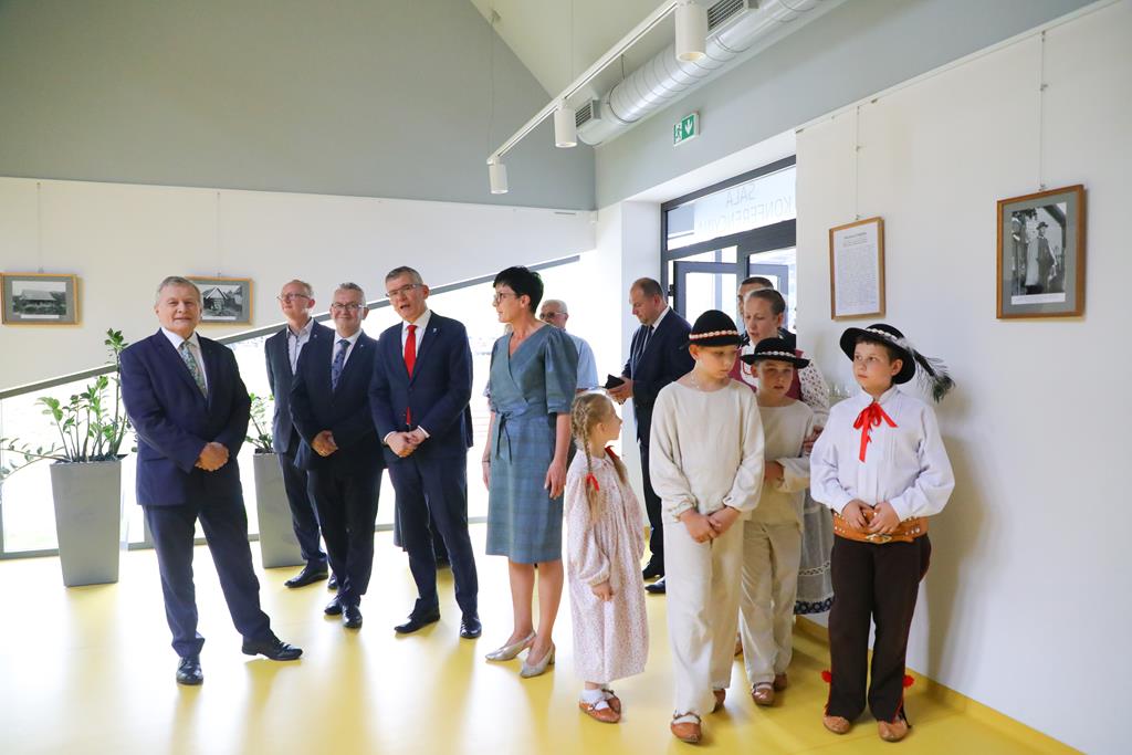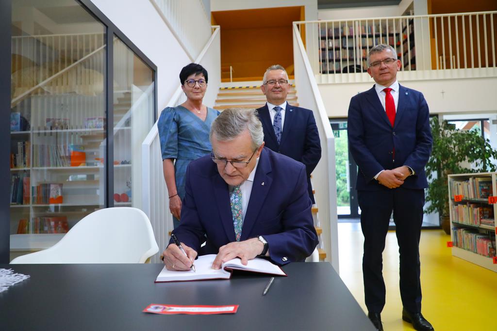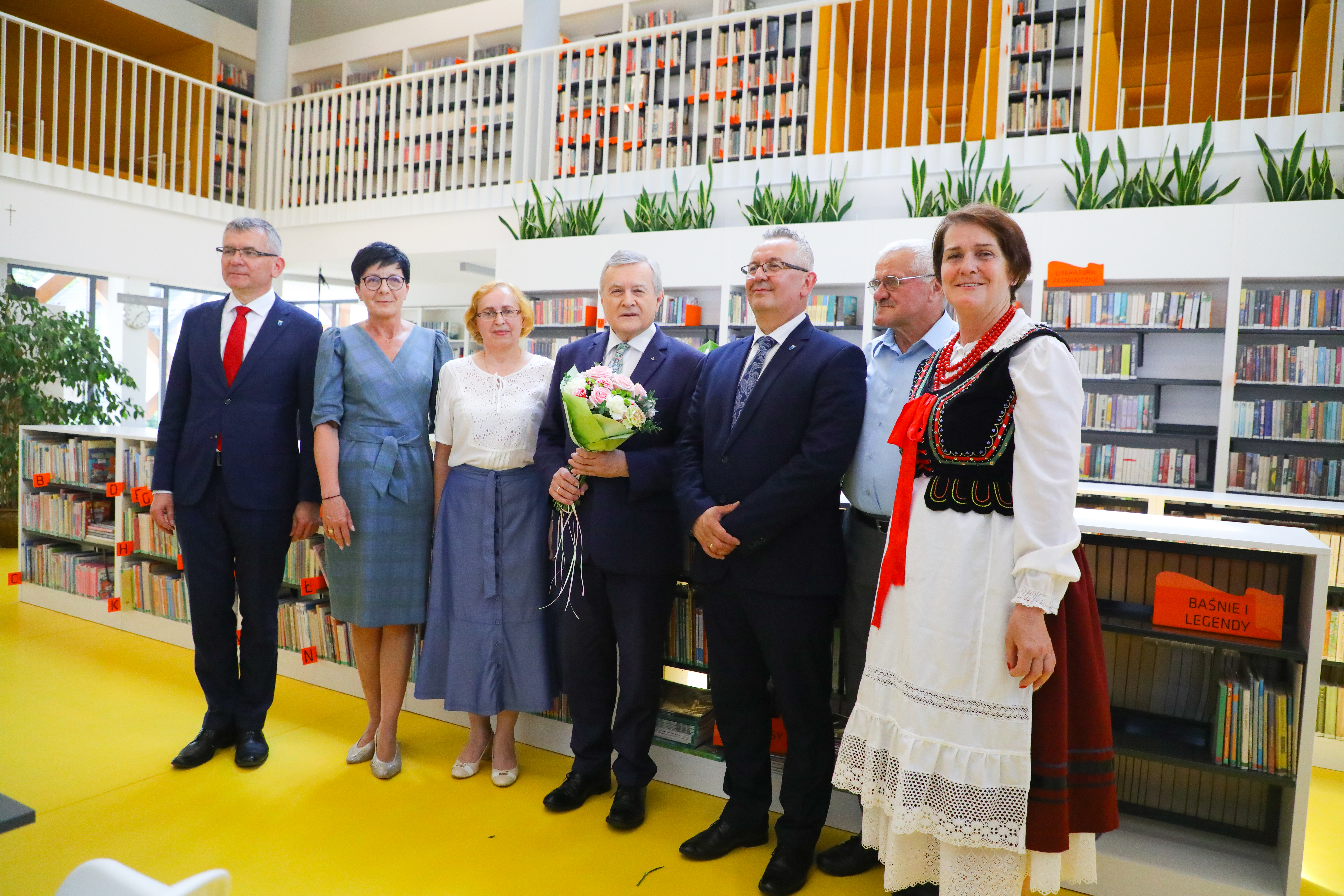 Wizyta ministra kultury prof. Piotra Glińskiego w zmodernizowanej bibliotece w Przysietnicy