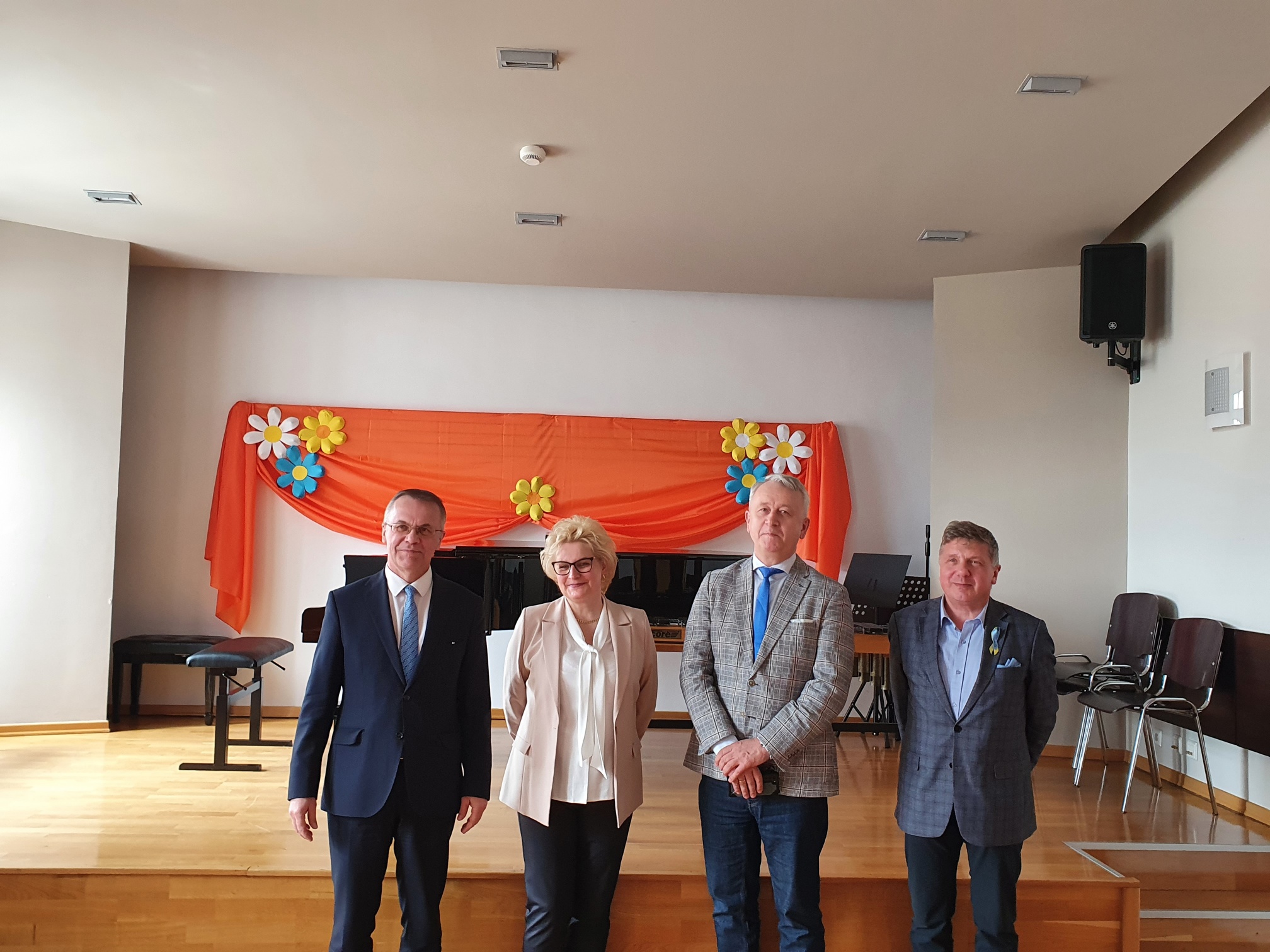 Podczas wizyty na Pomorzu wiceminister kultury i dziedzictwa narodowego, generalny konserwator zabytków dr Jarosław Sellin obejrzał postęp prac związanych z rozbudową Państwowej Szkoły Muzycznej w Kościerzynie o nową salę koncertową wraz z zapleczem.