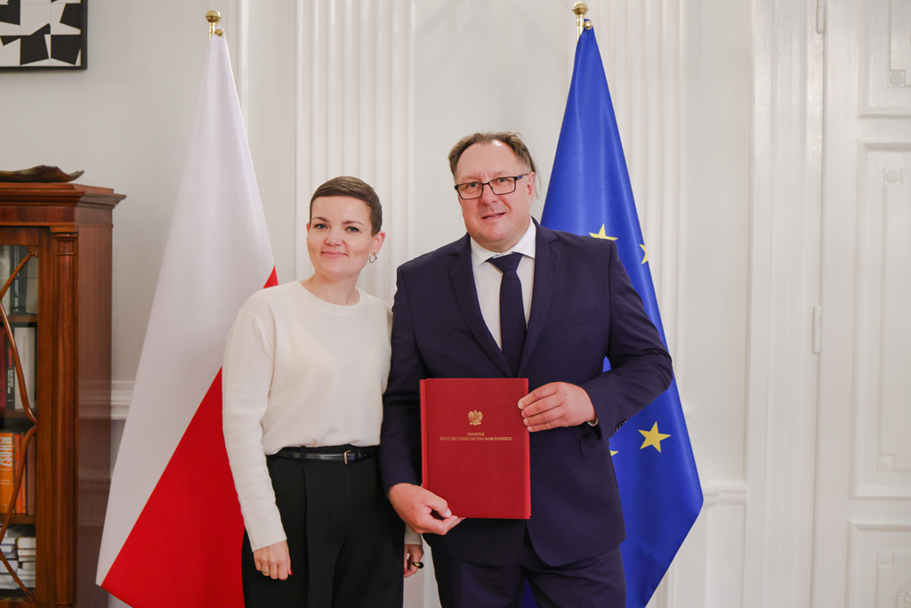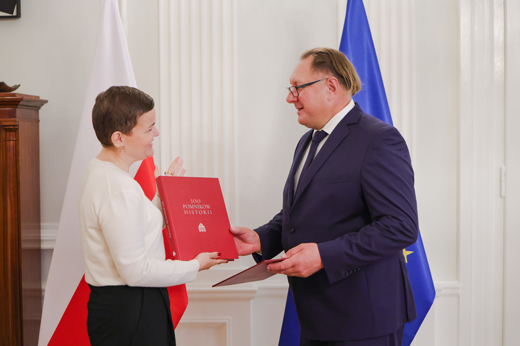 Podczas uroczystości w Ministerstwie Kultury i Dziedzictwa Narodowego ministra Marta Cienkowska wręczyła Sławomirowi Mularskiemu, znalazcy miecza, nagrodę za wkład w ochronę dziedzictwa kulturowego.