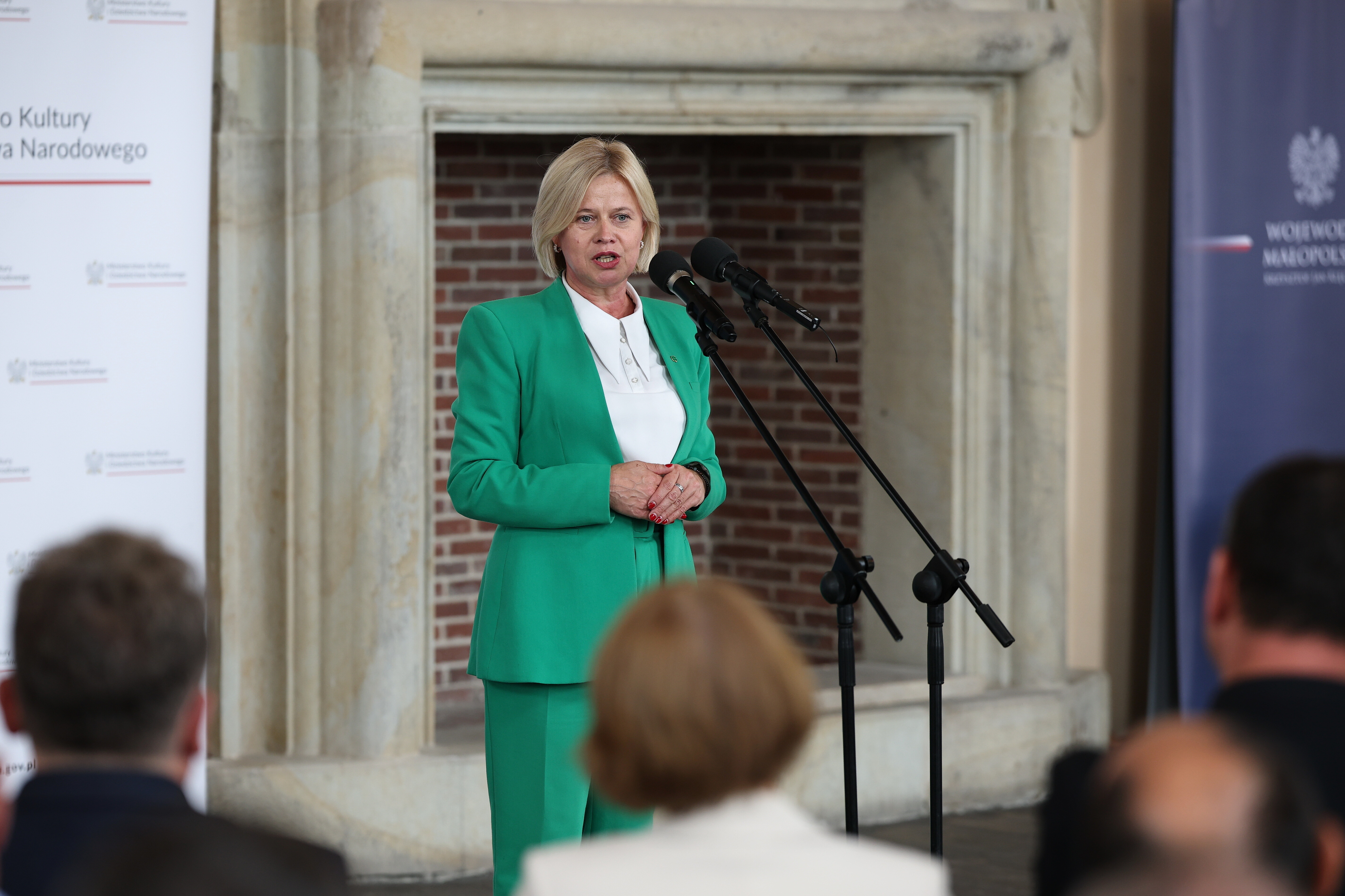 Cieszę się, że nasze spotkanie odbywa się właśnie na Zamku w Wiśniczu – drugim co do wielkości zamku w Małopolsce. To miejsce zasługuje na wsparcie, dlatego z radością ogłaszam, że w ramach programu „Ochrona zabytków” przekazujemy dotację w wysokości ponad 1,29 mln zł na remont przejścia podziemnego w Zamku – powiedziała Bożena Żelazowska, sekretarz stanu w Ministerstwie Kultury i Dziedzictwa Narodowego, generalna konserwator zabytków. – W tym roku przeznaczamy na kulturę w Małopolsce łącznie ponad 200 mln zł. To nie tylko finalizowane dziś dotacje z programu „Ochrona zabytków”, ale także program FEnIKS, w ramach którego pięć instytucji z woj. małopolskiego otrzyma wsparcie na łączną kwotę 184 mln zł. Do tego dochodzi jeszcze program „Infrastruktura kultury” i projekty miękkie. Wierzę, że środki te przyczynią się do podniesienia rangi kultury i historii tego utkanego zabytkami regionu – dodała.